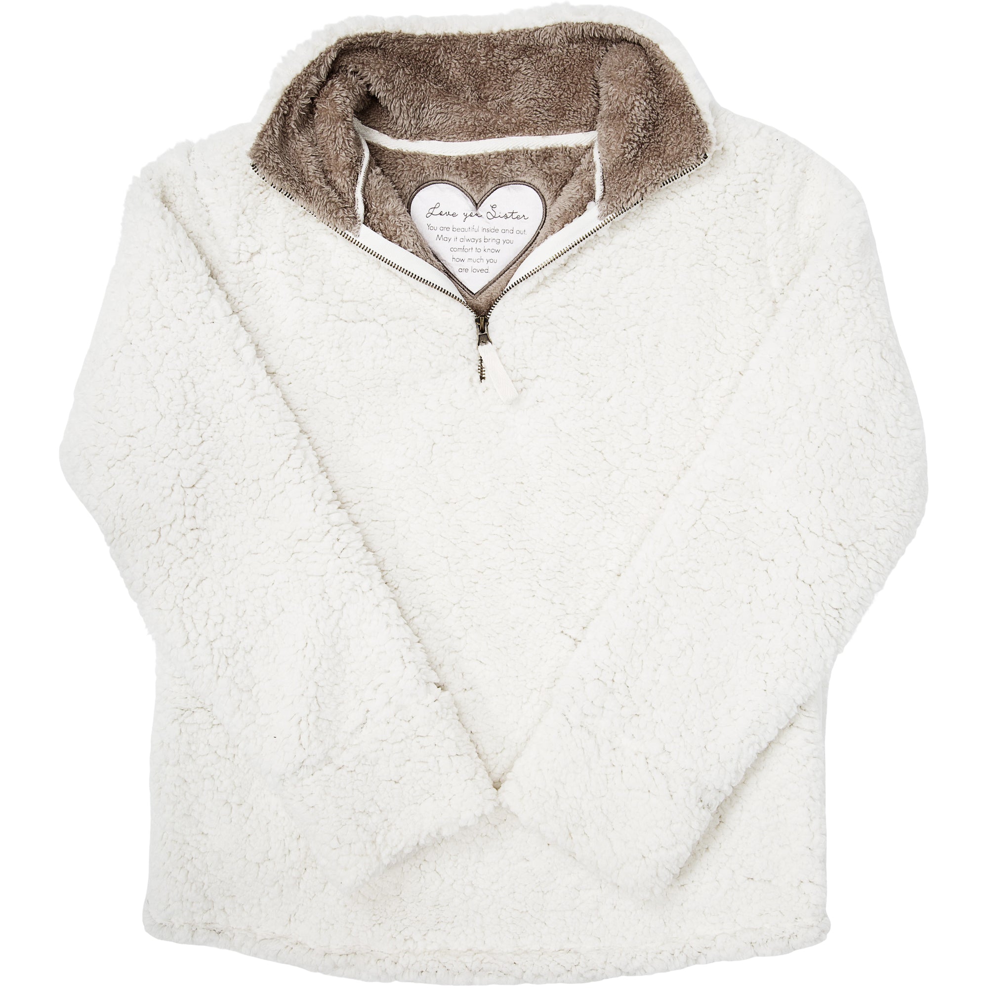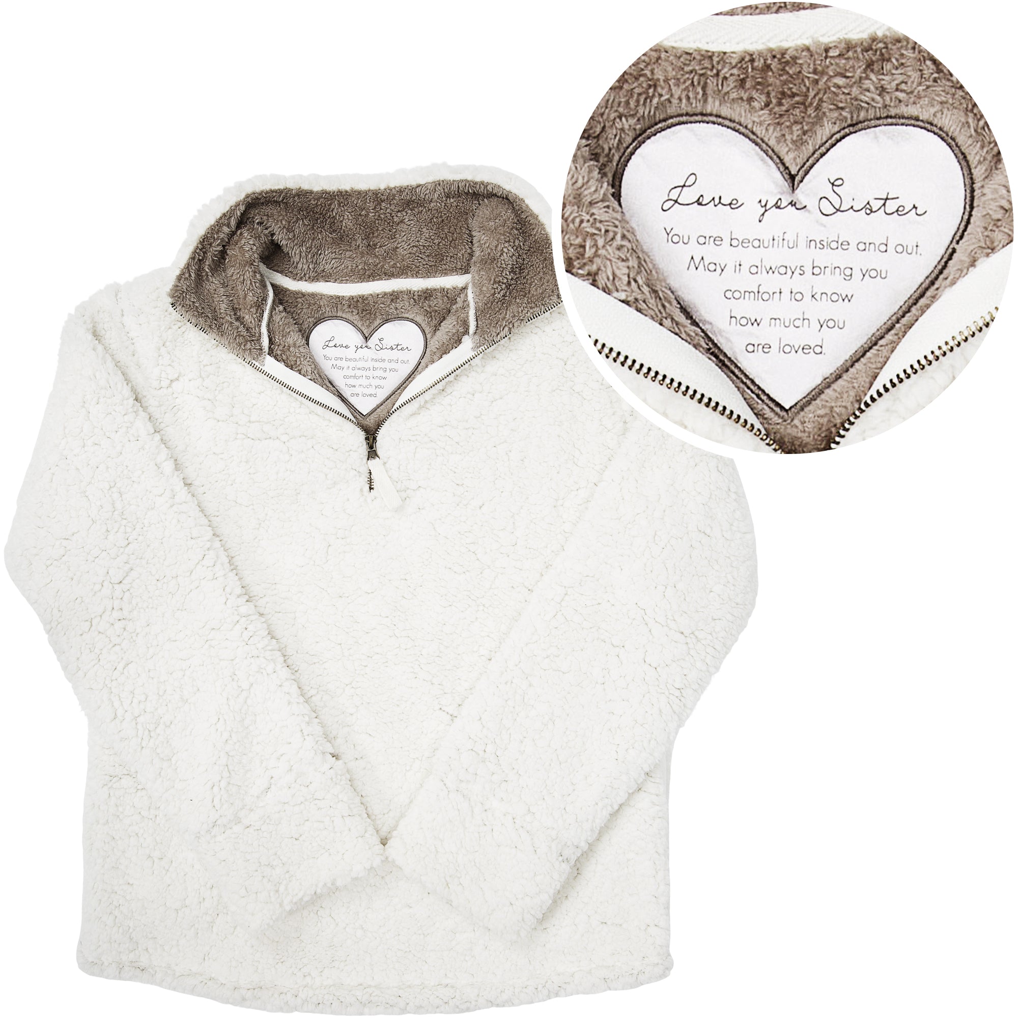 - IN-HOUSE DESIGN: "Love You Sister; You Are Beautiful Inside And Out. May It Always Bring You Comfort To Know How Much You Are Loved." text is printed onto the embroidered heart detail.