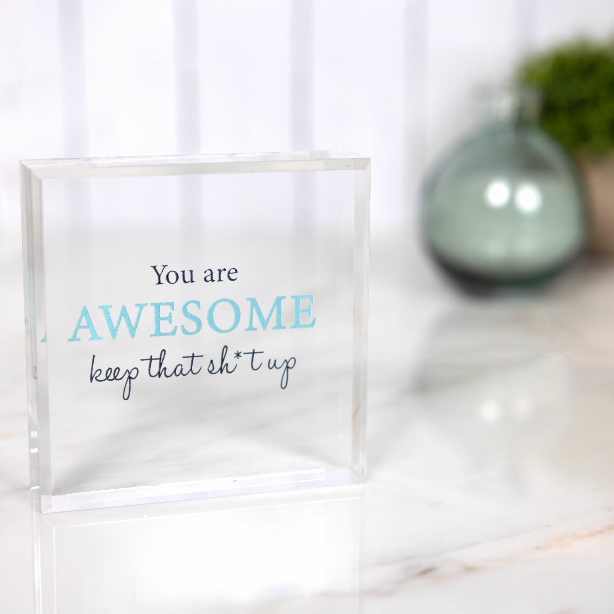 - IN-HOUSE DESIGN: Features the bold, no-nonsense encouragement: “You are AWESOME, keep that shit up,” in an uplifting blend of teal and gray fonts. The script styling adds charm, while the direct language delivers a punch of motivation with a touch of sass.