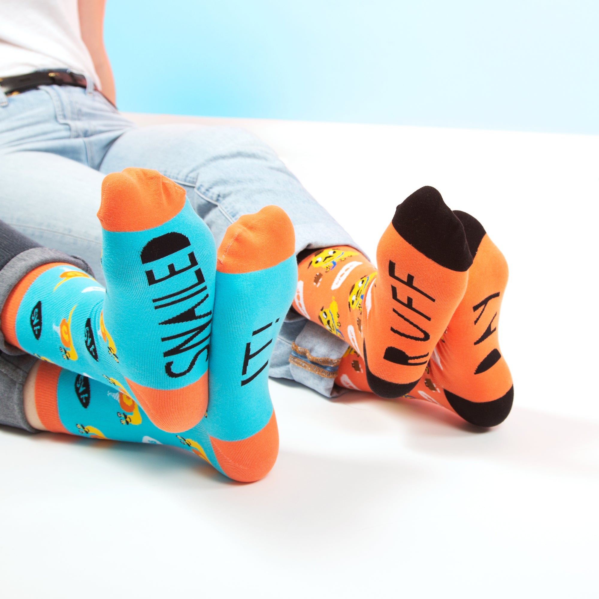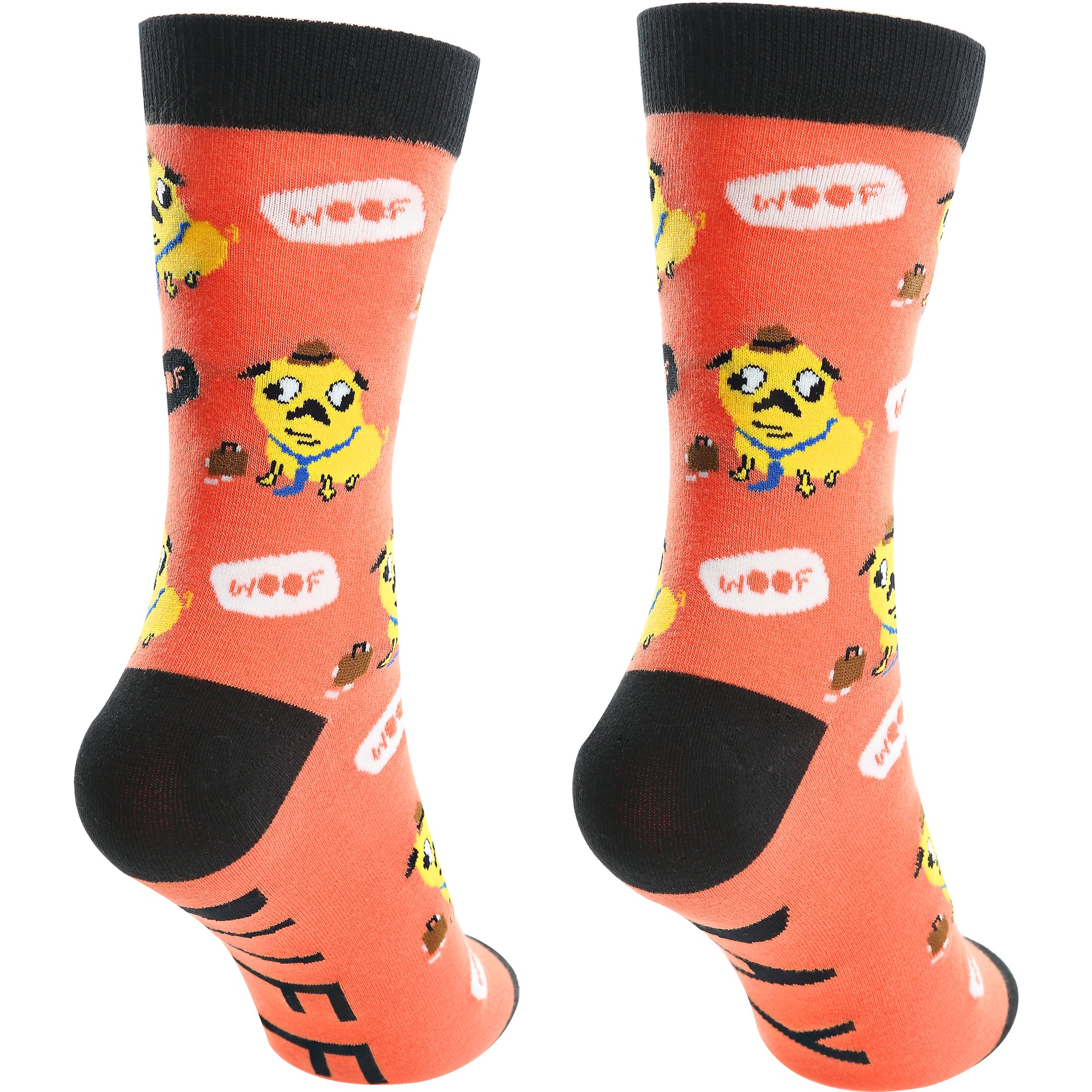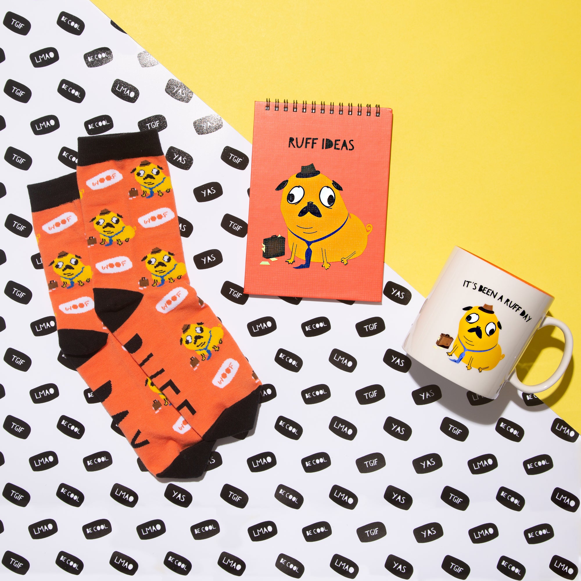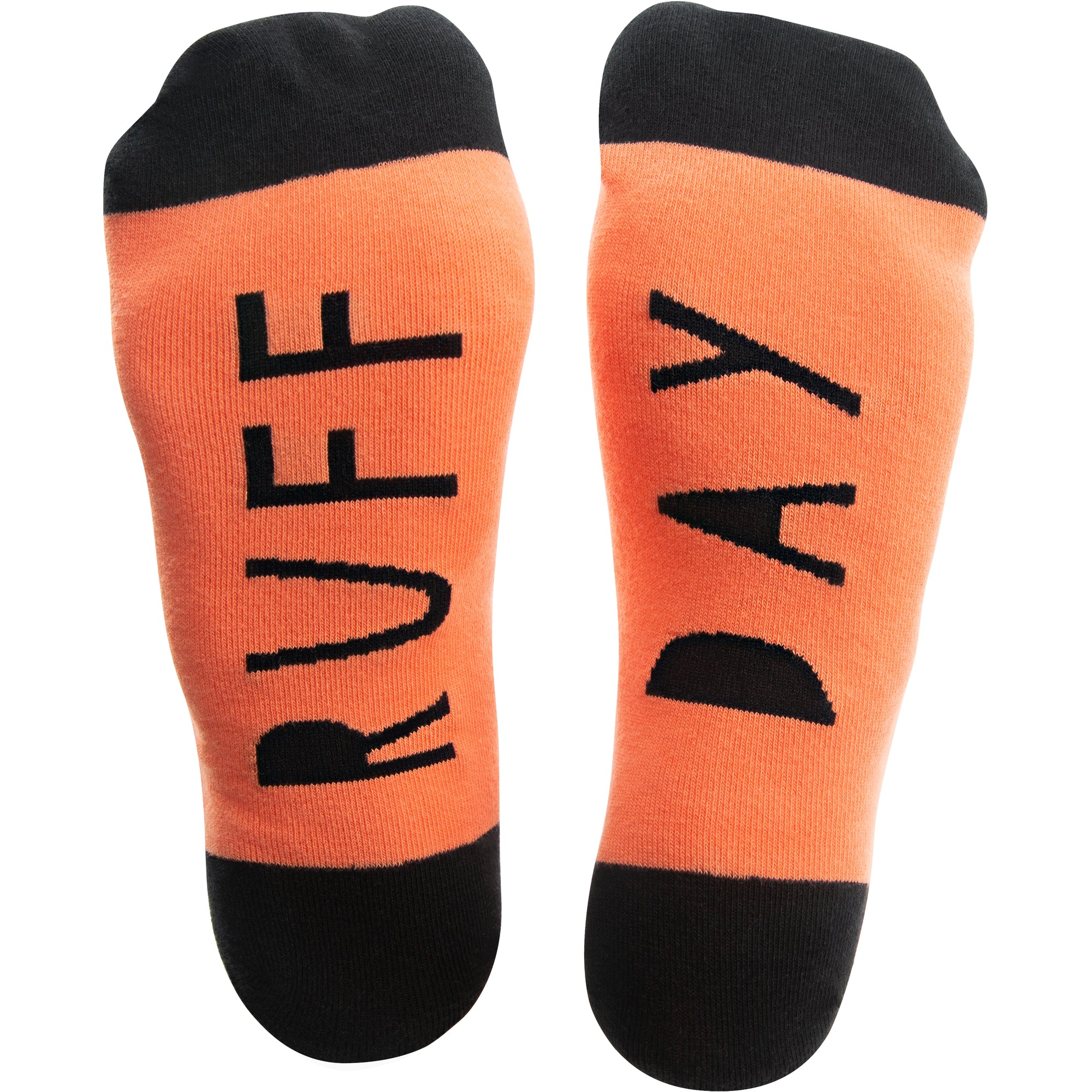 - IN-HOUSE DESIGN: "Ruff Day" text is sewn into the base of the socks and is accompanied by a dog pattern with "Woof" text.