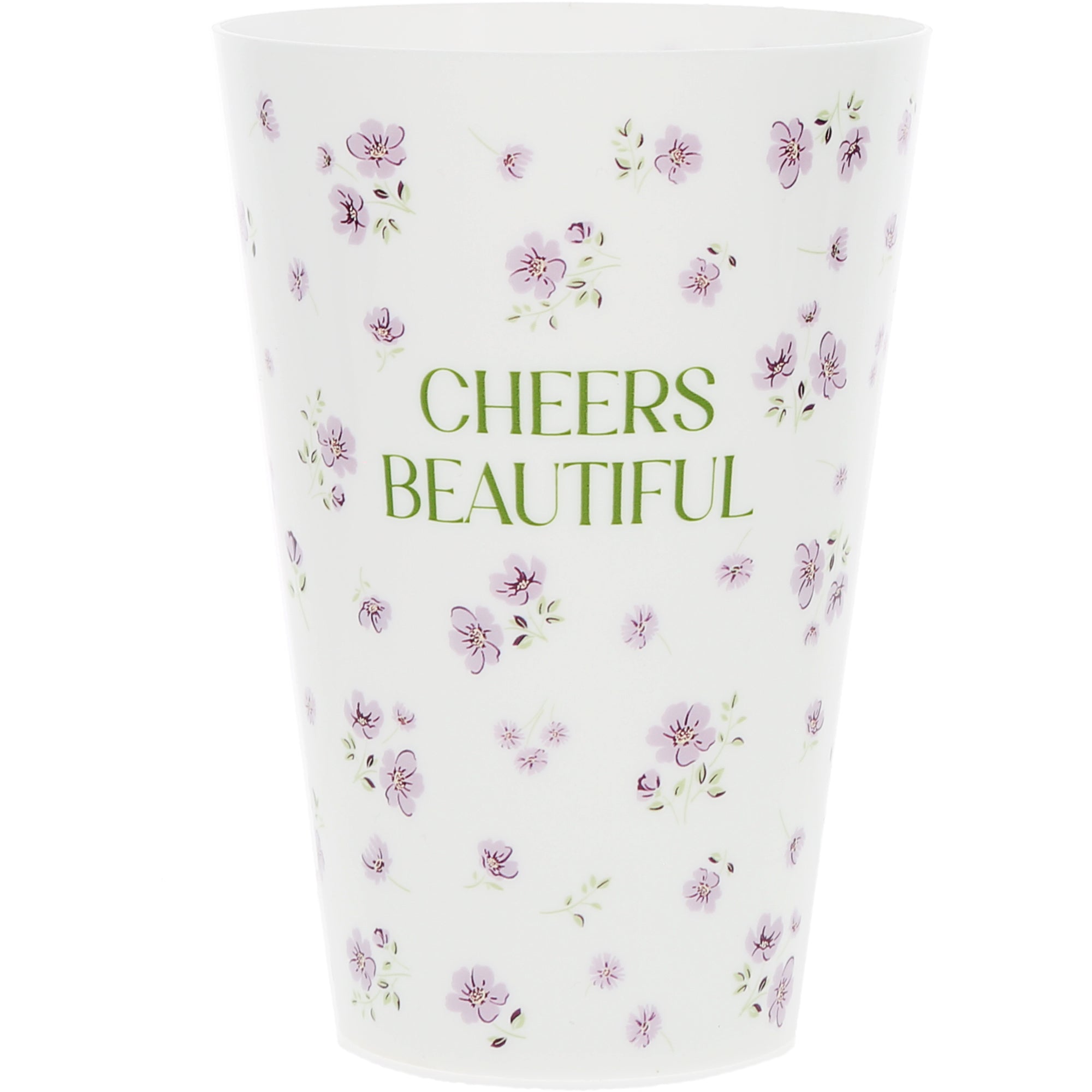 - IN-HOUSE DESIGN: Part of the Petals of Love collection, each cup features delicate full-wrap floral patterns paired with the uplifting phrase “Cheers Beautiful.” Designed with Pavilion’s signature attention to color and composition, these prints bring an elegant yet cheerful aesthetic to your table setting. The floral designs were inspired by nature’s gentlest blooms—symbolizing kindness, friendship, and self-love—making them as meaningful as they are beautiful.