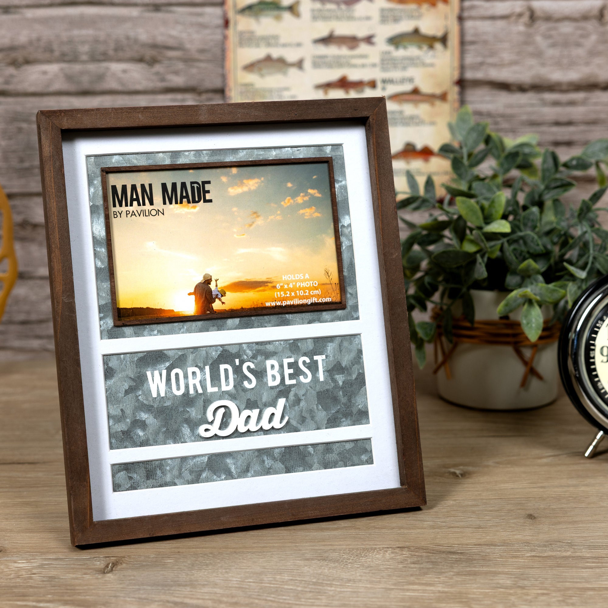 - IN-HOUSE DESIGN: Designed with a warm, rustic aesthetic, the mat board includes a carved-look “World’s Best Dad” sentiment that feels personal and heartfelt. The layered textures—stained wood, tin accents, and raised wording—give the frame depth and style suitable for father figures of all ages.