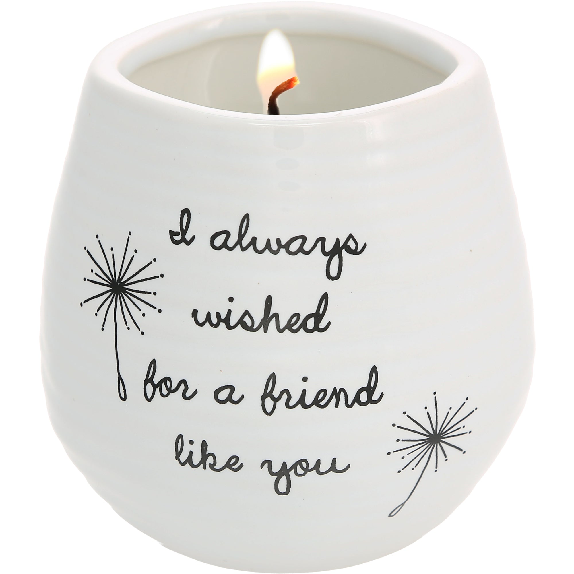 • IN-HOUSE DESIGN: "I Always Wished For A Friend Like You" text on the front of the candle is printed, as are the accompanying dandelion details.