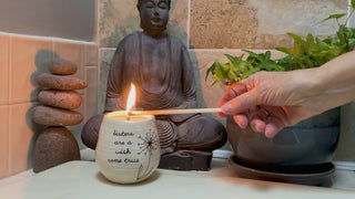 - PREMIUM QUALITY: 8 fl. oz. candle, packaged in a printed open-faced box, is made from ceramic and 100% soy wax, has a serenity scent and feet to avoid surface scratching.
