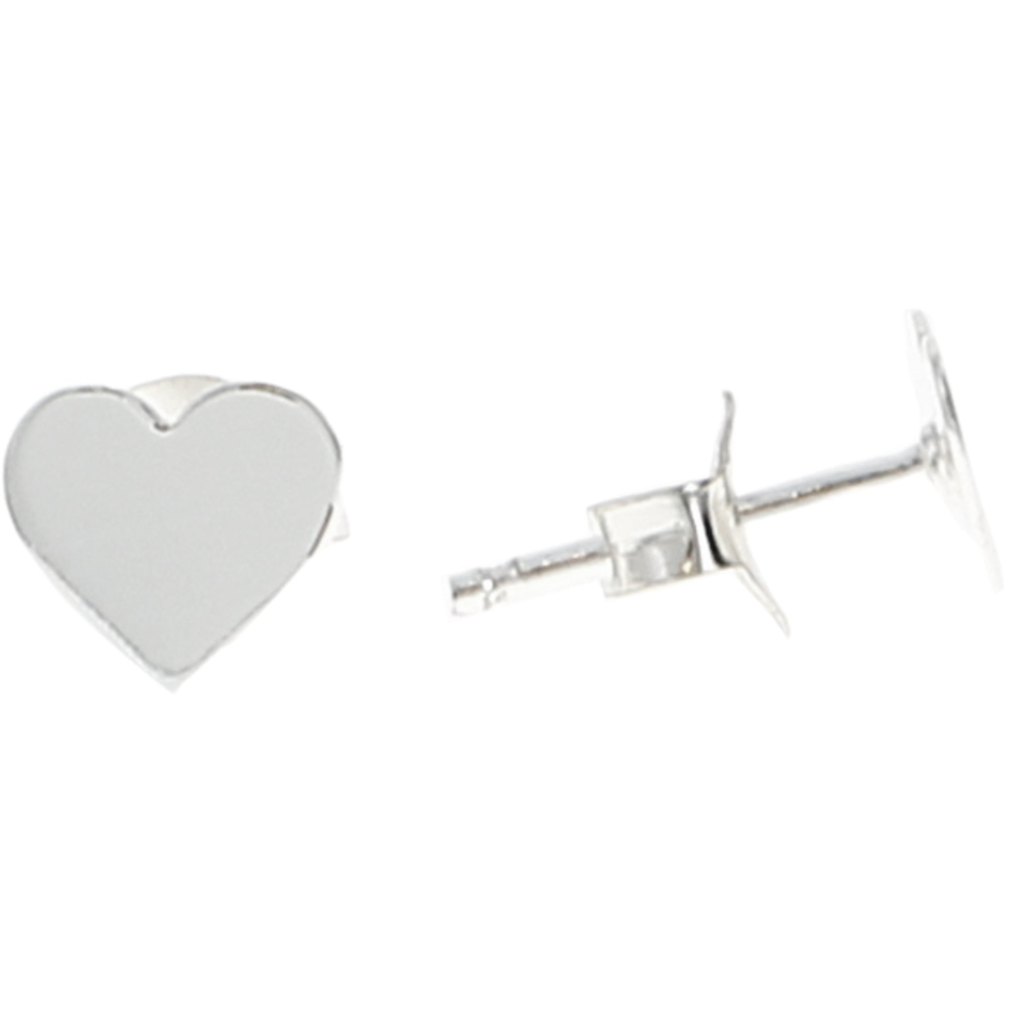 - PREMIUM QUALITY: A 3.25" x 3.25" blank, thick white paper greeting card holds a pair of earrings on its front. The small .28" studs with a flat heart and solid sterling silver features a push-back backing. It is packaged inside a plastic polybag, with cotton padding between the card's front and back, neatly tucked inside a white gift box with a logo printed on to the top.