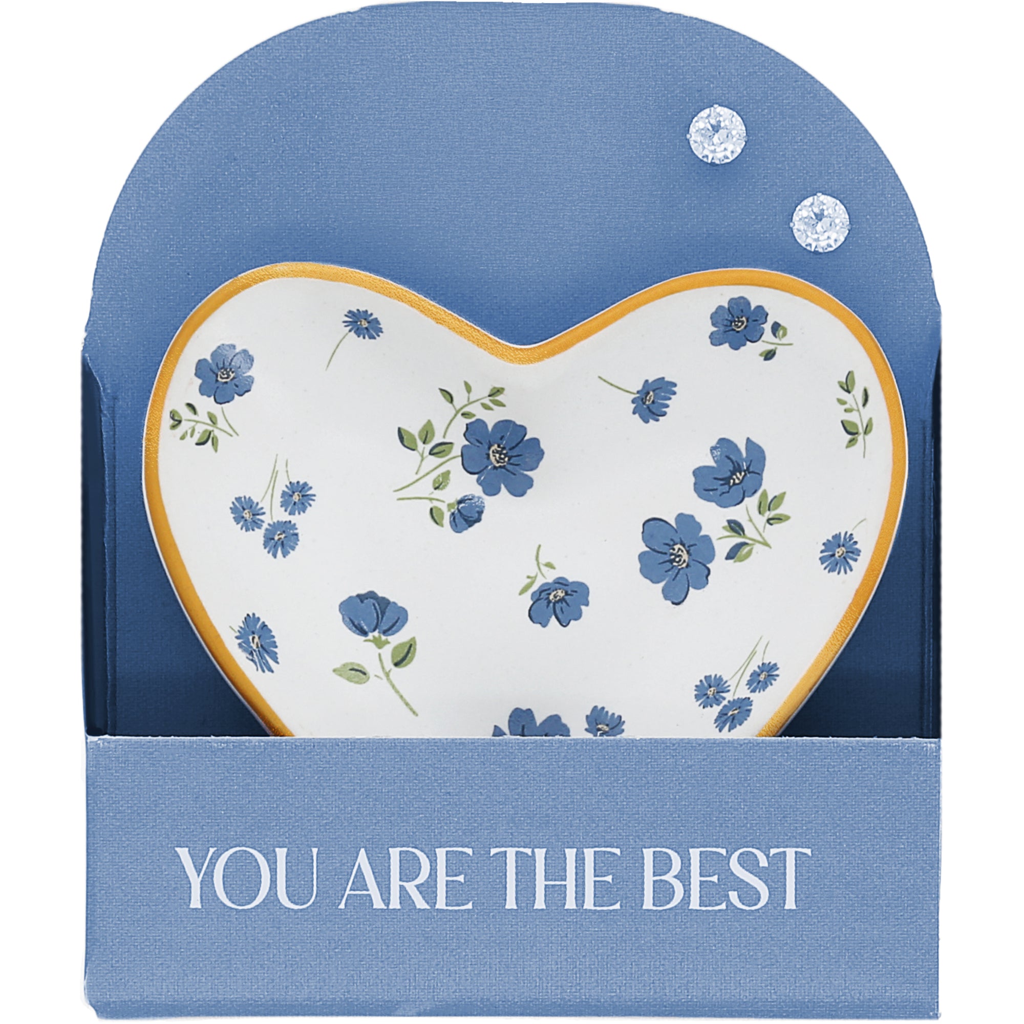 - IN-HOUSE DESIGN: Designed with calming blue florals and clean typography that reads “You Are the Best” on the coordinating navy blue gift box. The gold-rimmed dish and shimmering earrings come together for a polished, uplifting presentation — both elegant and understated.