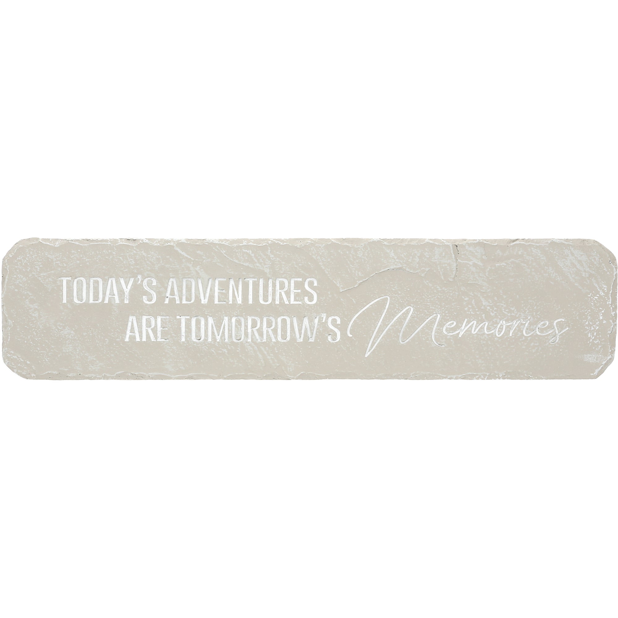 • IN-HOUSE DESIGN: Featuring the meaningful phrase “Today’s Adventures Are Tomorrow’s Memories,” this piece blends clean sans-serif text with elegant, hand-painted script for a balanced, heartfelt aesthetic. The message is applied in crisp white against a warm taupe-toned stone, adding a soft and reflective tone to any outdoor space. Carefully hand-finished to ensure uniqueness and artisan quality in every piece.