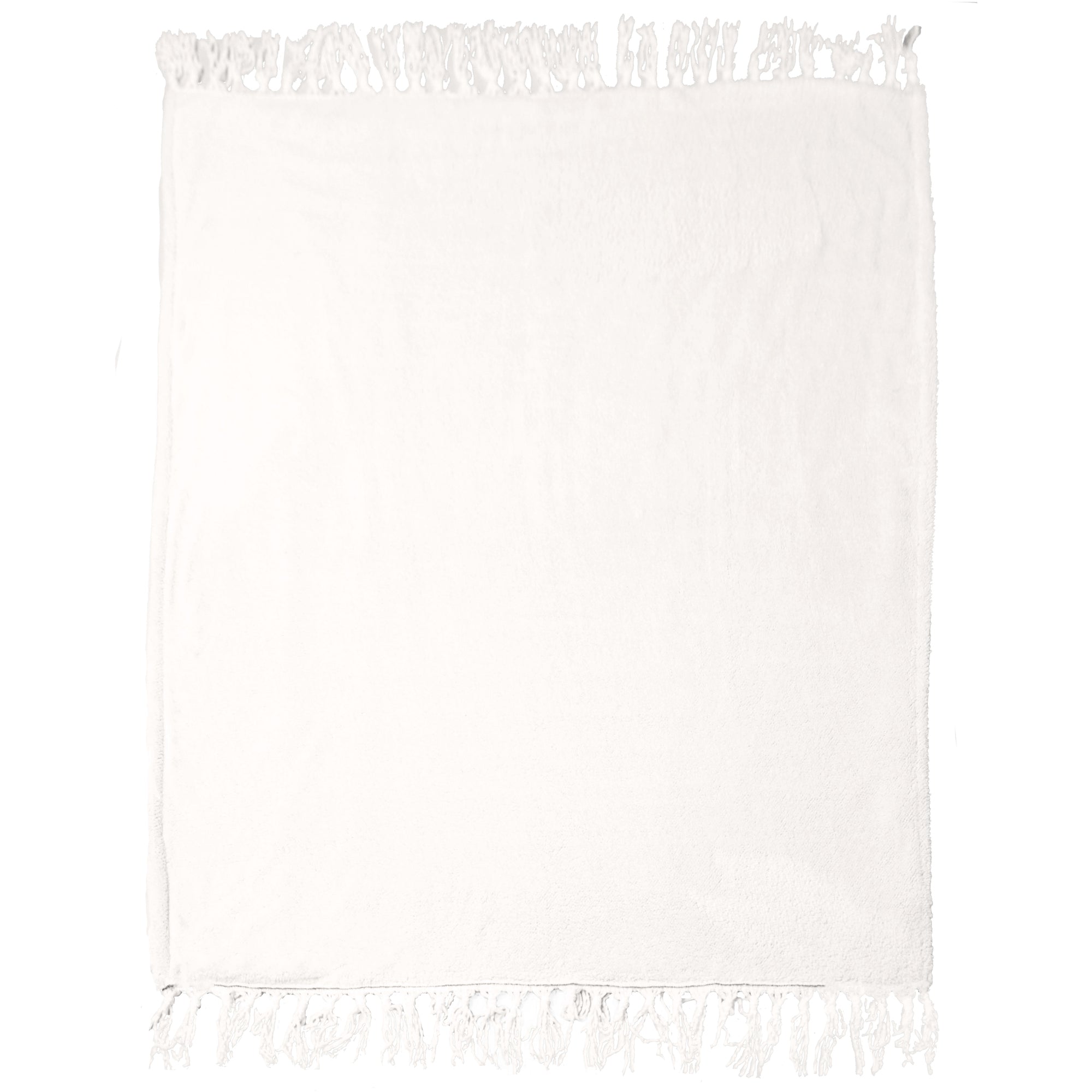 - PREMIUM QUALITY: 50" long x 60" tall and .5" wide premium throw is made from 400 GSM, 100% polyester plush jacquard with thirty-one hand-made knotted tassels at the top and bottom of each blanket which extends the height of the blanket to 72.5" in total. The excellent packaging consists of a white silk bow-tied ribbon with a gray cardboard band containing material and sizing information. Attached is a thick paper tag with the entire blanket sentiment. The blanket is neatly folded and securely attached to white wood and a silver metal hook hanger.