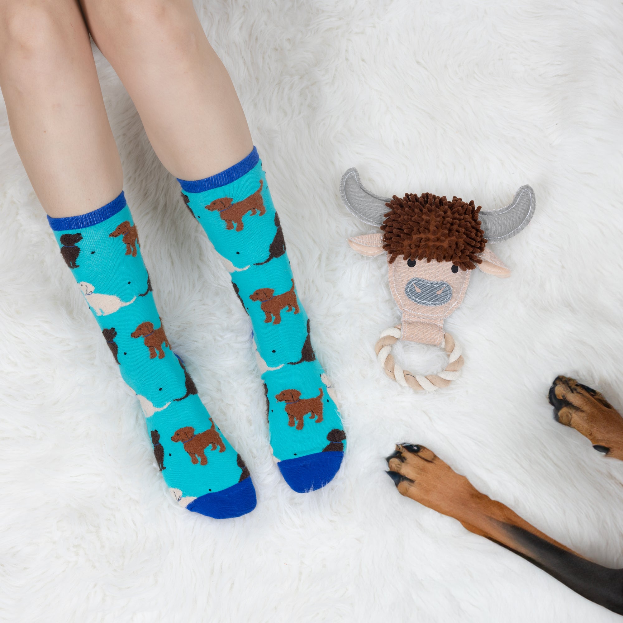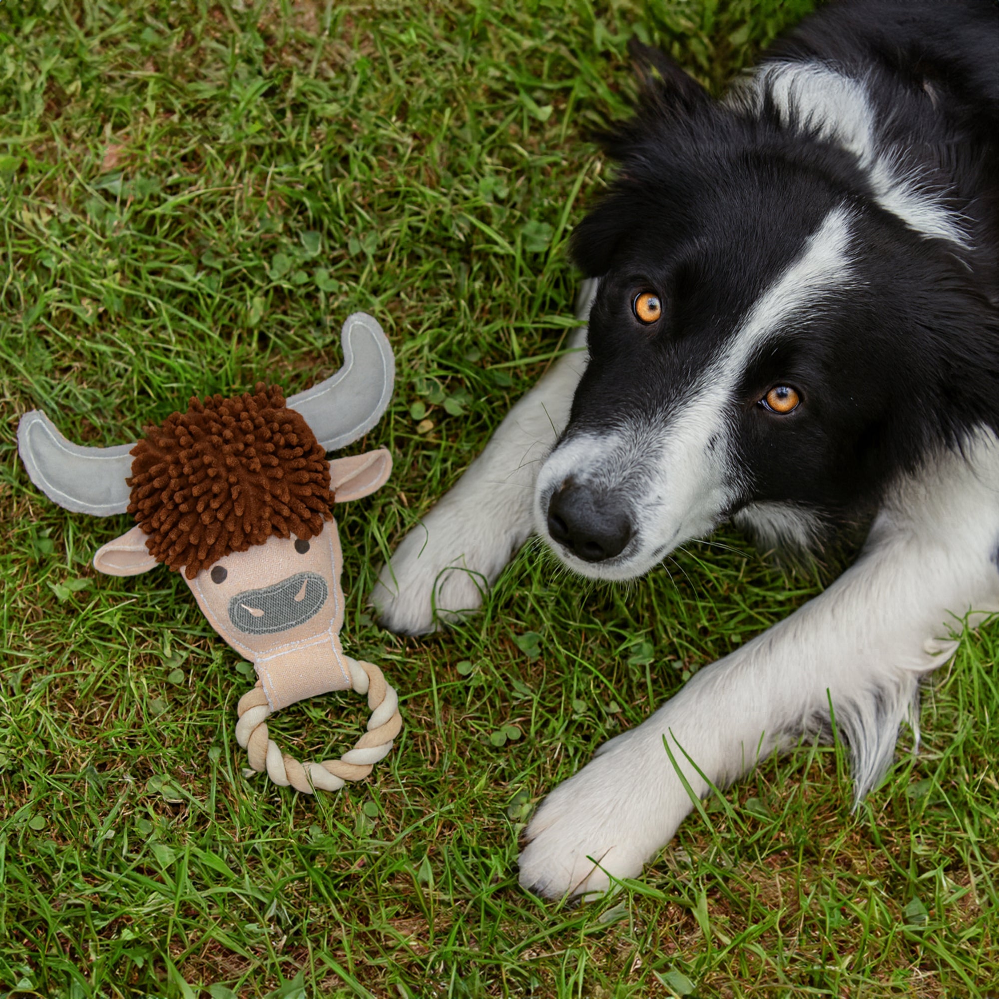 • IN-HOUSE DESIGN: Expertly crafted to resemble a Highland cow’s face, this toy includes horn details, a fuzzy textured hair topper, and embroidered facial features that create a whimsical farm aesthetic. The optional removable faux fur topper adds an extra layer of interactive texture.