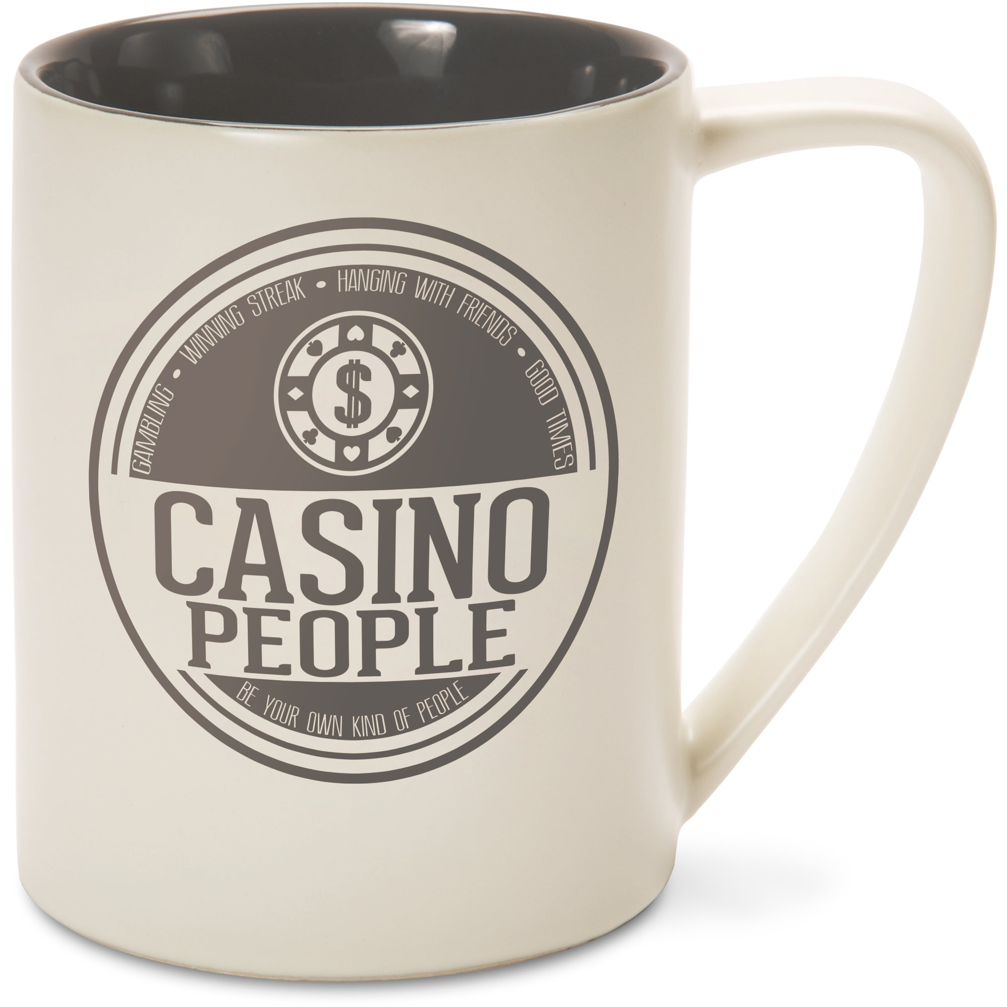 - IN-HOUSE DESIGN: "Casino People" decal, including "Gambling; Winning Streak; Hanging With Friends; Good Times" text is printed on both sides of the mug, as are the accompanying blank logo and "Be Your Own Kind Of People" text.