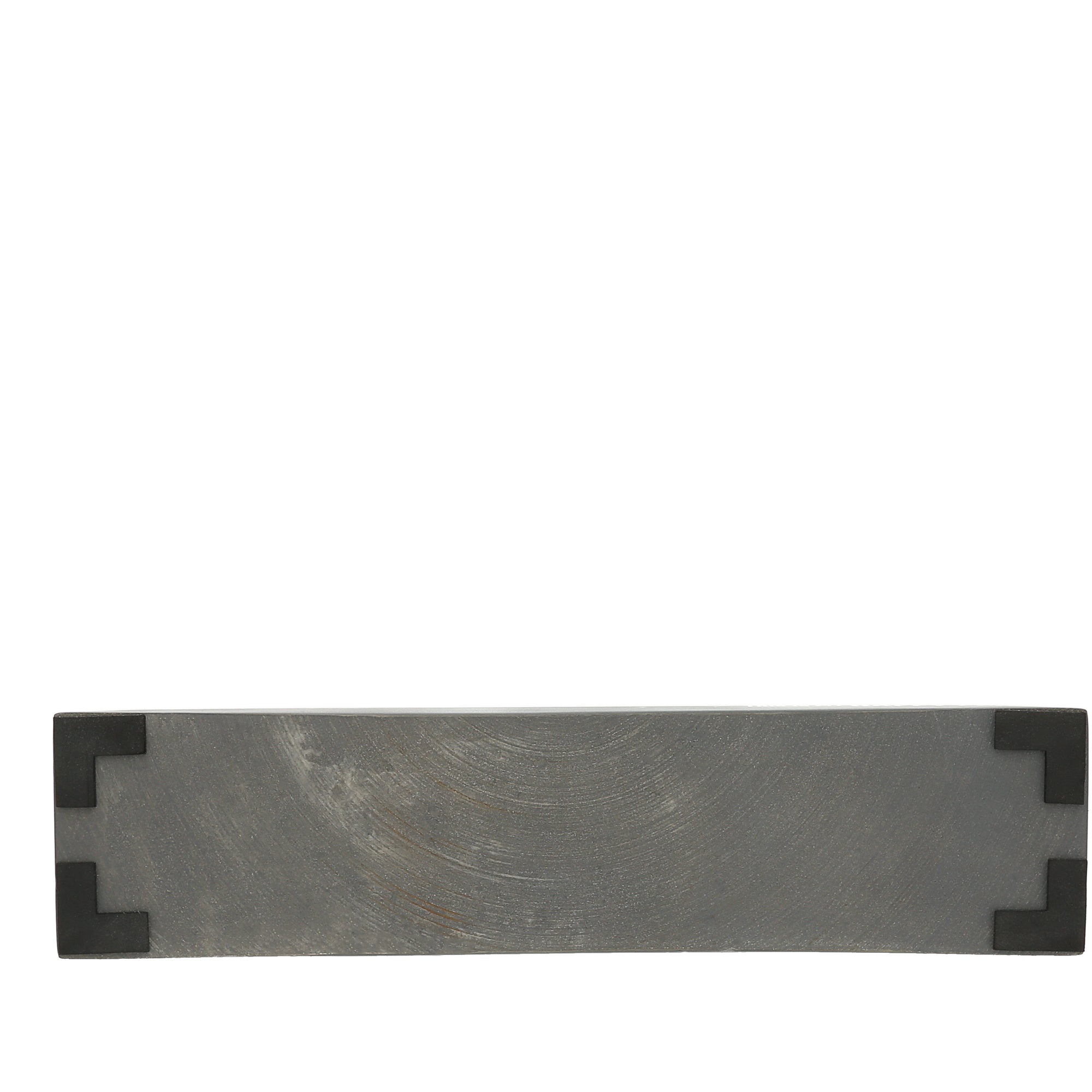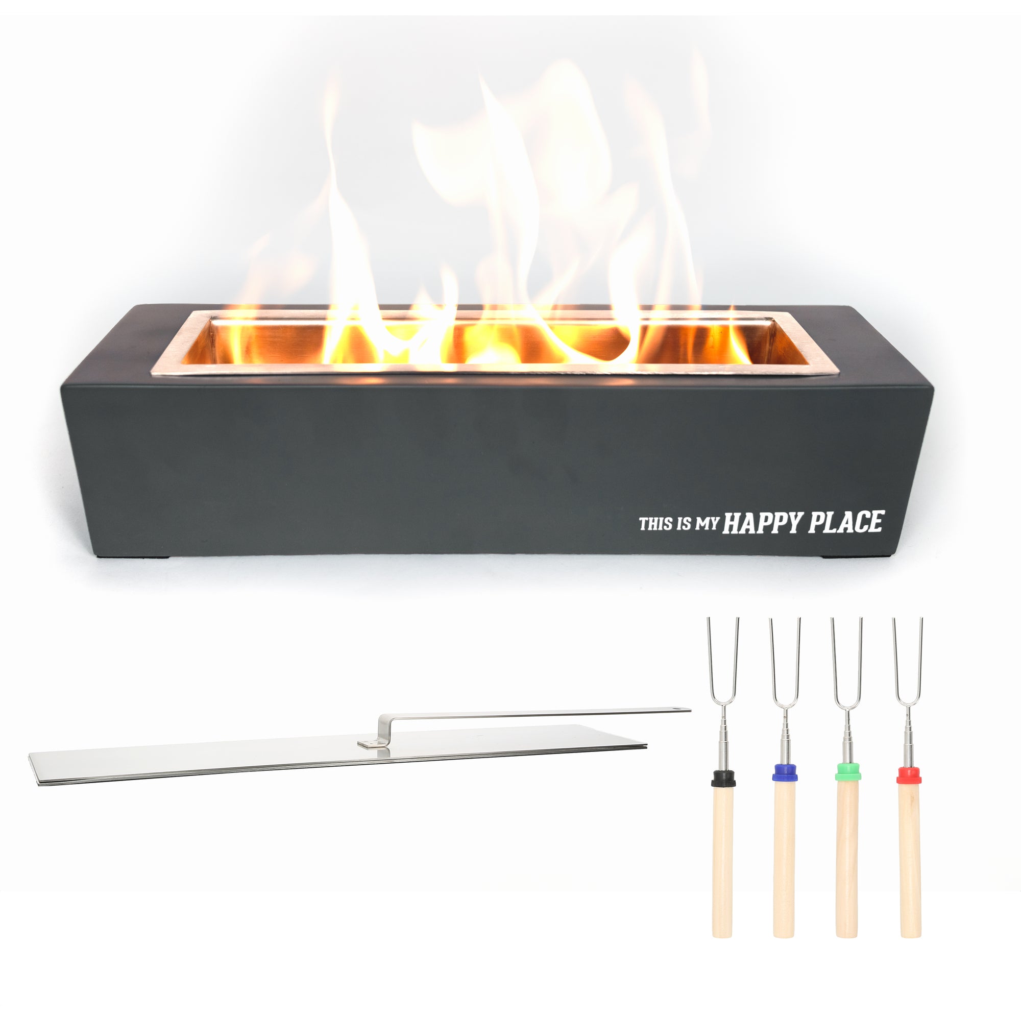 - PREMIUM QUALITY: This 15.75" long x 3.75" tall and wide tabletop firepit is made from concrete with four 1.5" L-shaped black foam pads on each of the bottom corners, protect tabletop surfaces from being scratched. The top center has 3.25" deep, 12.5" long, and 2.5" wide hole for housing the 11.75" x 2" wide x 3" deep stainless steel burn chamber. The .5" lip helps the pit sit inside the hole. The 12.75" x 3" wide stuffer has an 8.5" long x .75" wide handle. A single re-usable 11.25" long x 2" wide wool pad is included - be sure to replace the padding periodically. Continuous burn times vary between 30 to 60 minutes.