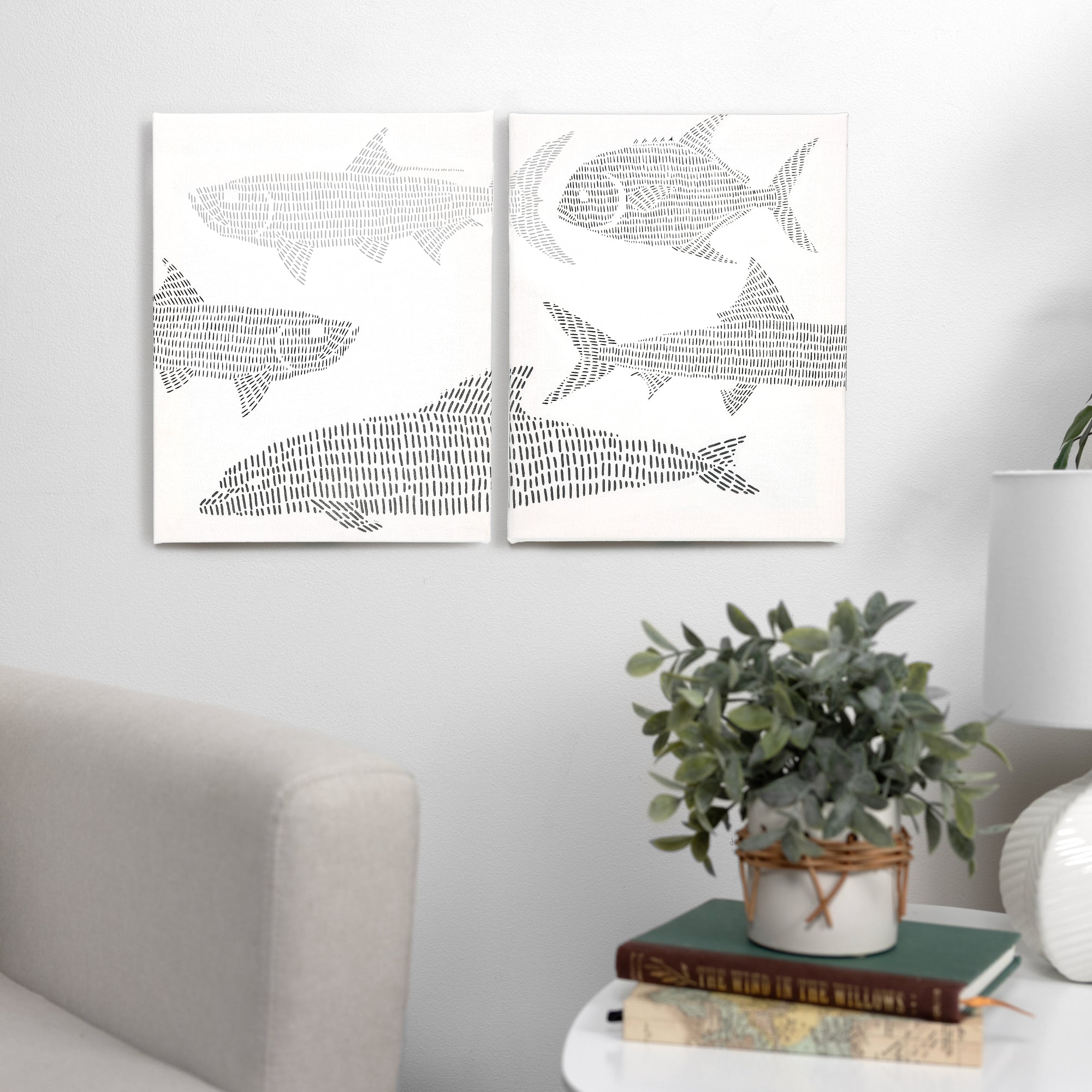 - IN-HOUSE DESIGN: The Beach Embroidered Plaques showcase a stunning arrangement of embroidered fish, giving a contemporary and coastal charm to your walls. The simple black-and-white stitch work contrasts beautifully with soft oceanic hues, making them ideal for beach houses, ocean retreats, or tropical decor themes.