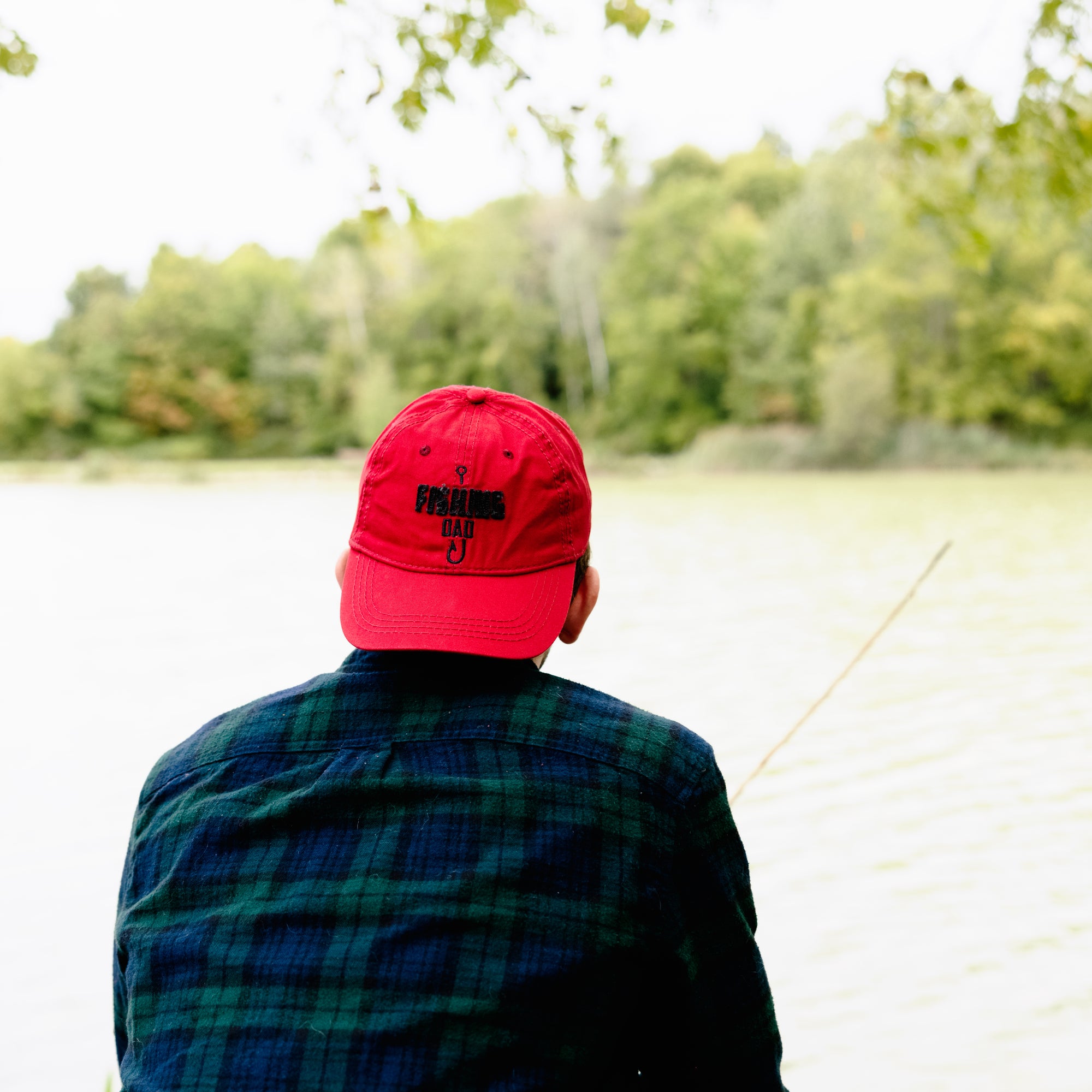 - IN-HOUSE DESIGN: The interior brim is lined with a matching flannel plaid pattern. "Fishing Dad" sentiment embroidered and appliqued onto the front of the deep red hat, which features a blackfish hook design. Packaged in a plastic polybag with hangtag.