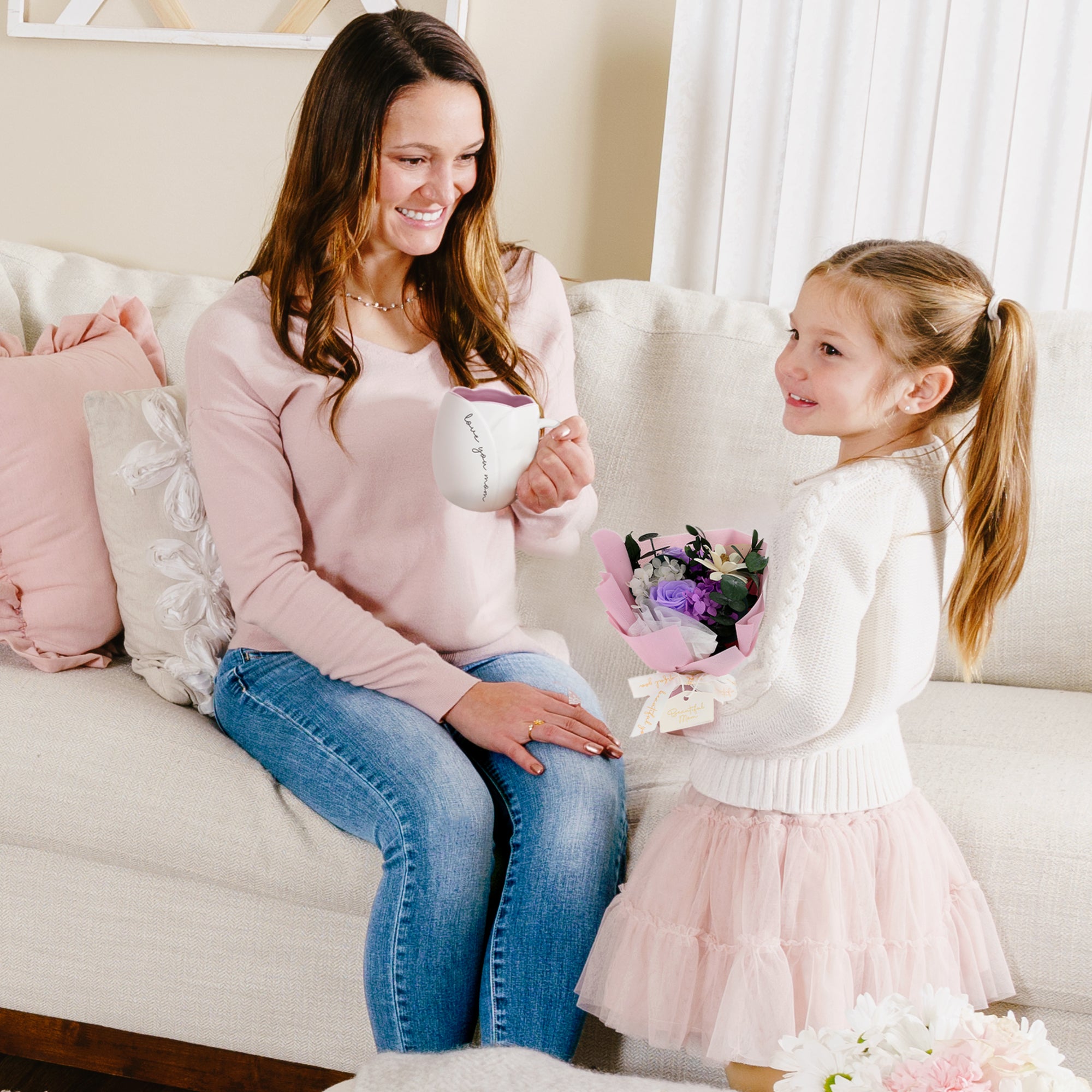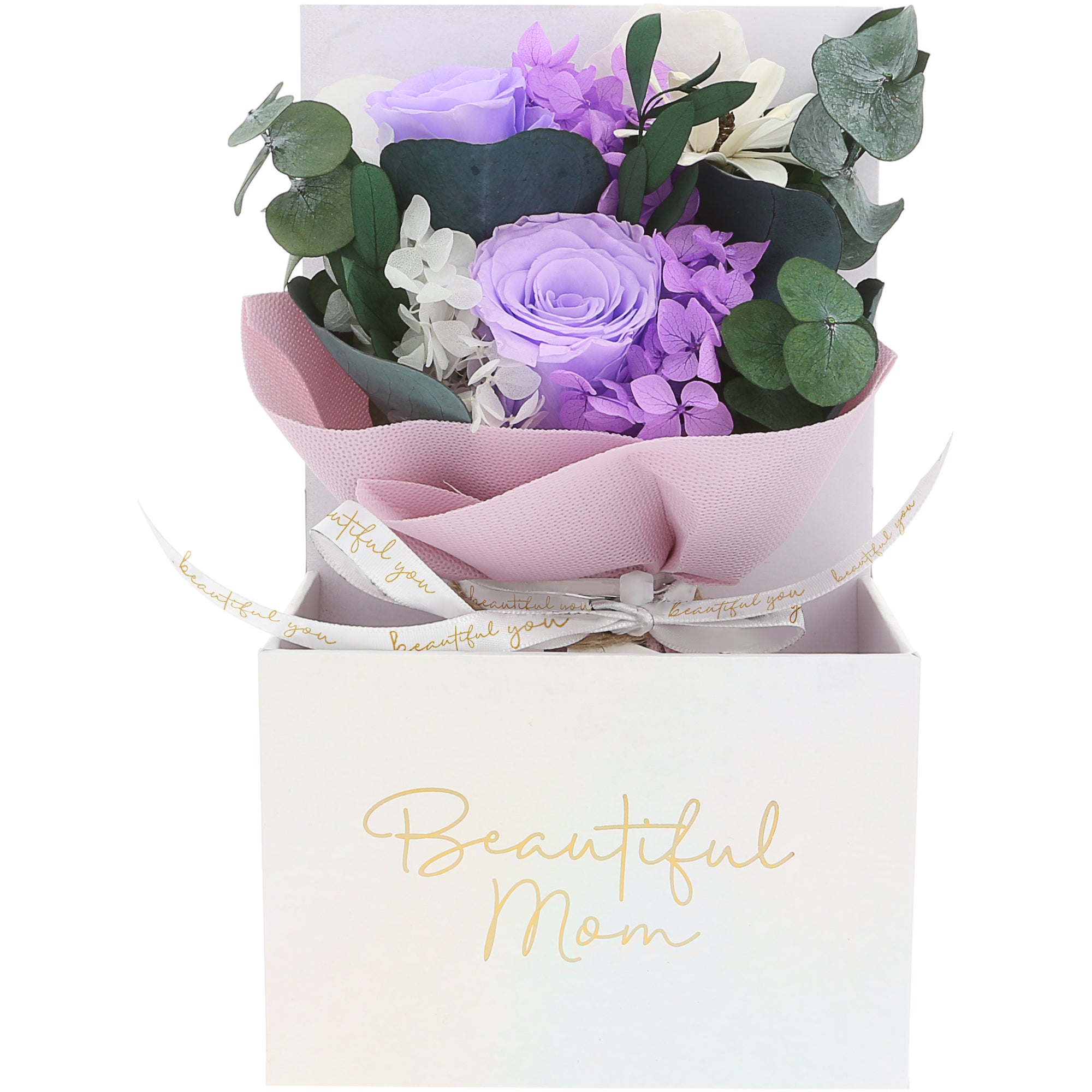 • IN-HOUSE DESIGN: Crafted with care by Pavilion’s talented in-house designers, this bouquet features a soothing combination of purple and white flowers, symbolizing elegance, grace, and everlasting love. The heartfelt sentiment "Beautiful Mom" is printed in a delicate, gold script on the front of the box, making it clear that this gift is a tribute to a cherished mother. The thoughtful color palette and meticulous arrangement reflect the love, appreciation, and admiration we feel for the moms in our lives.