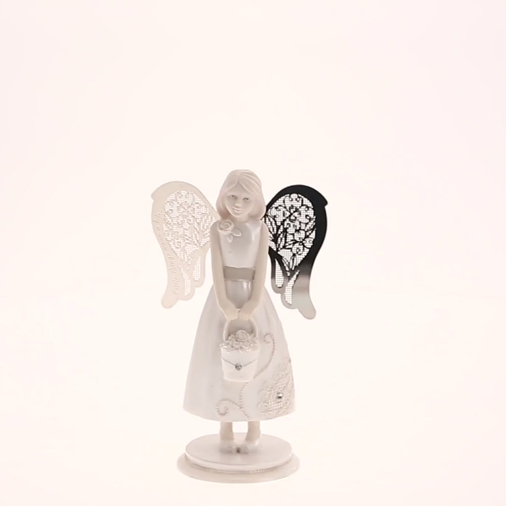 - PREMIUM QUALITY: 4.25" angel figurine, packaged in a printed box, is made from polyresin and features finely meshed silver-plated wings.