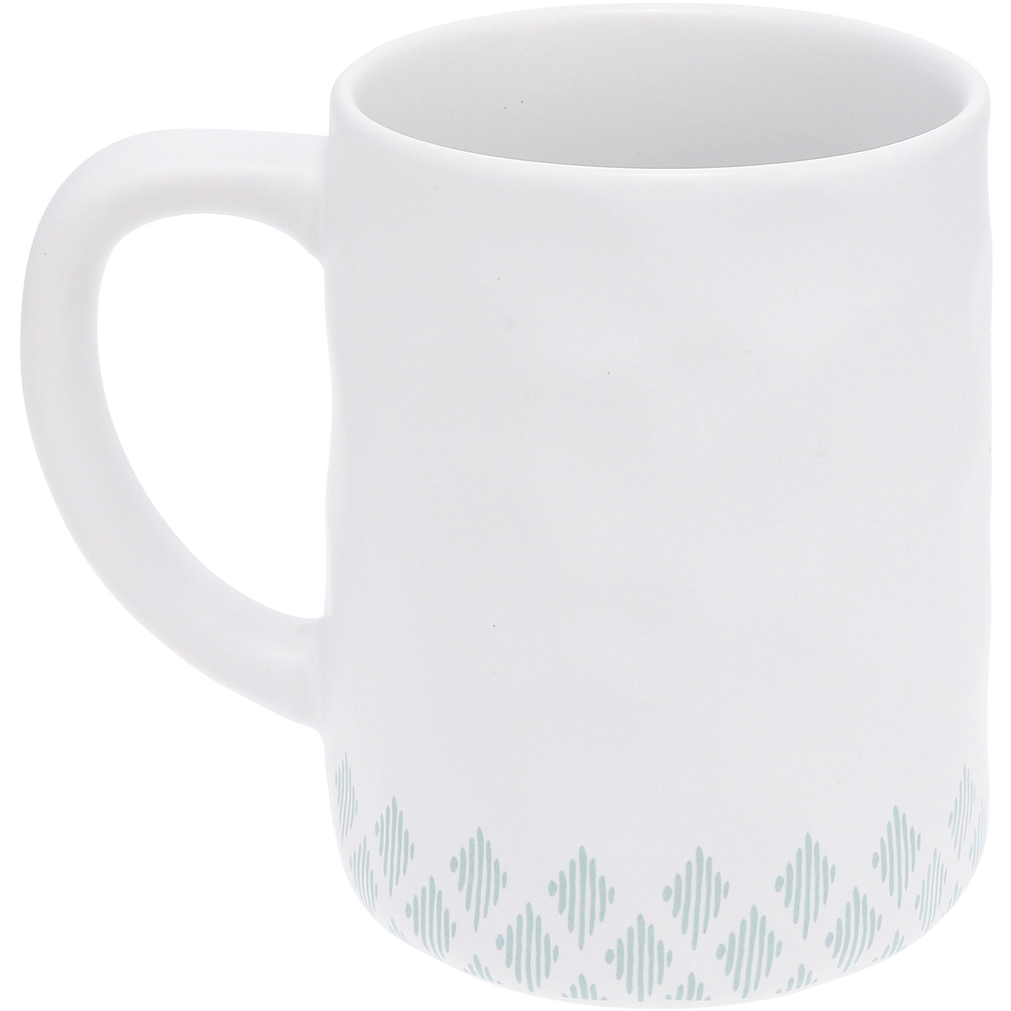 - PREMIUM QUALITY: This large 17-oz beaker-shaped stoneware mug has a matte finish with glossy decals. The rounded-edge handle provides a comfortable fit.
