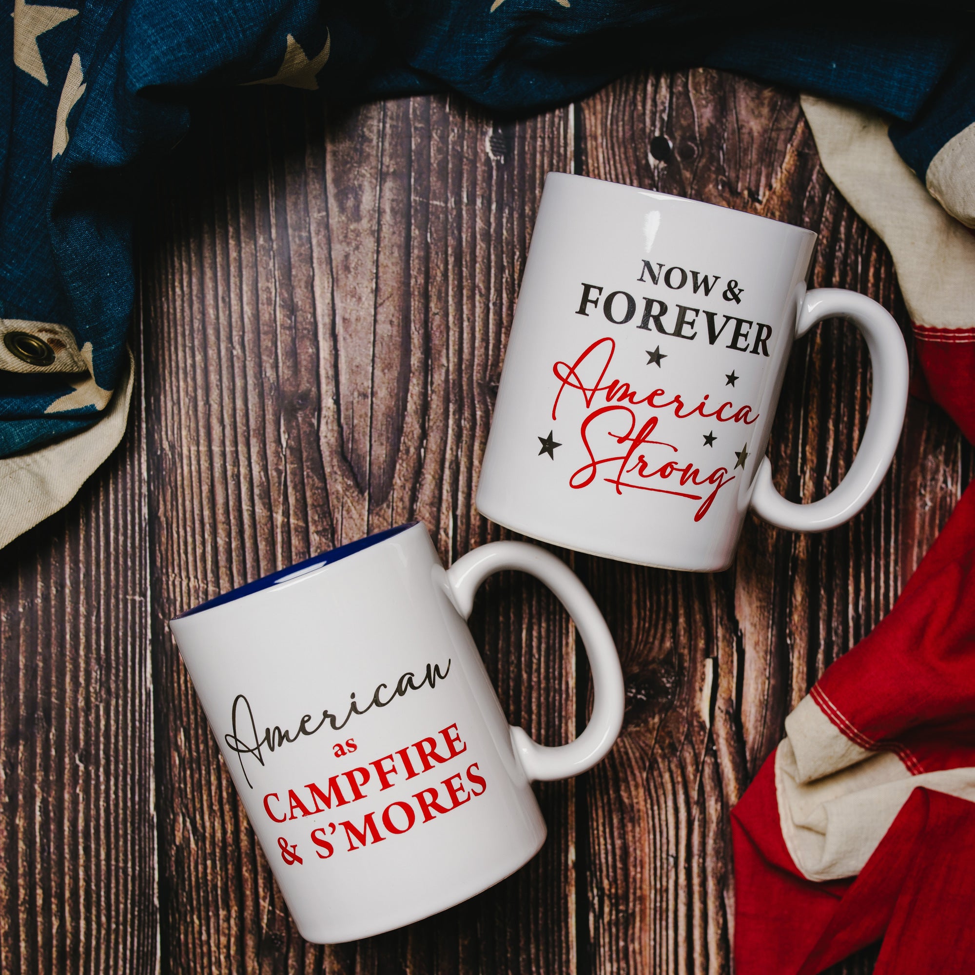 - IN-HOUSE DESIGN: "American as Campfire & S'Mores" is printed on the front of mug with silver decal highlight.