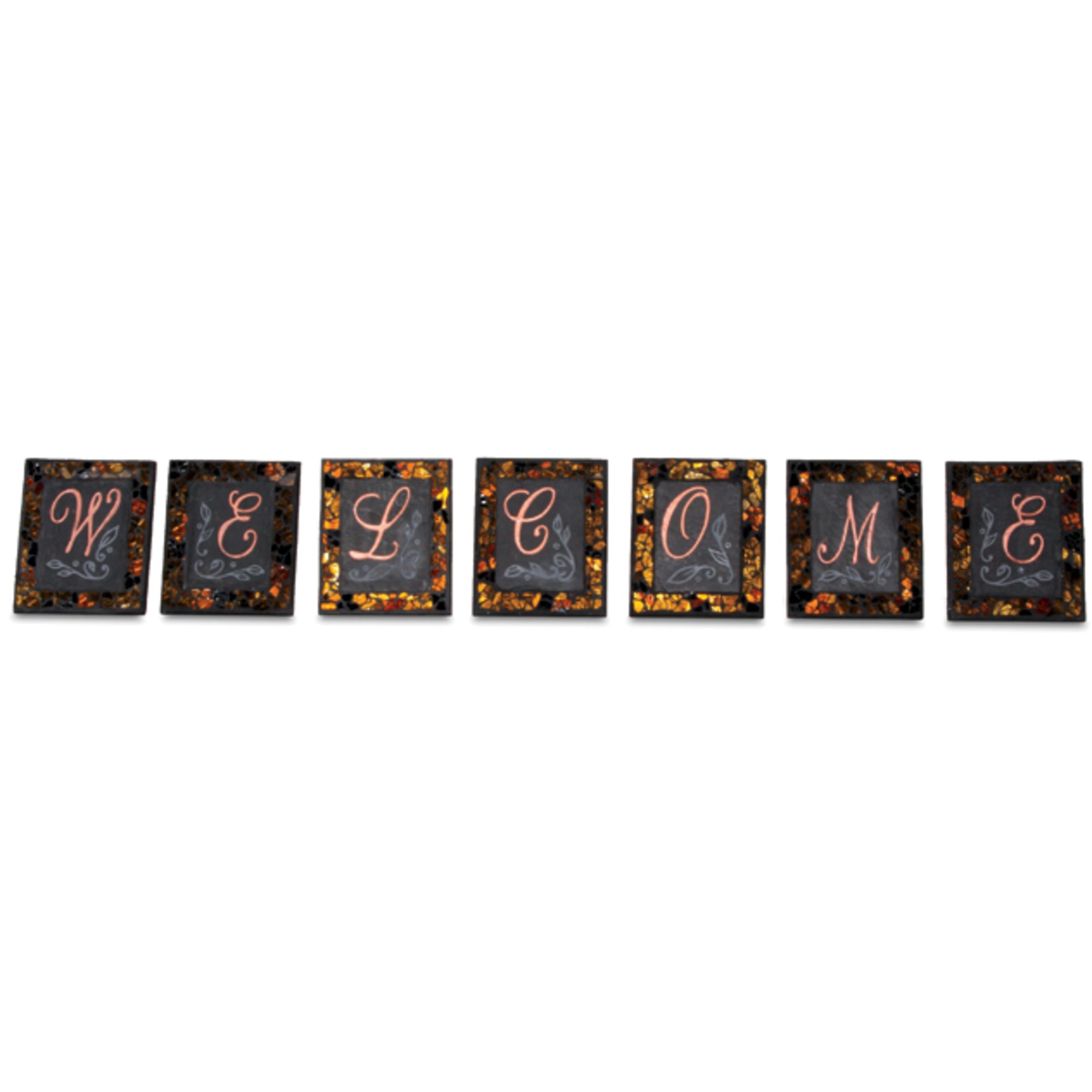 - IN-HOUSE DESIGN: Arranged tiles spell "Welcome" and feature a metallic mosaic design.