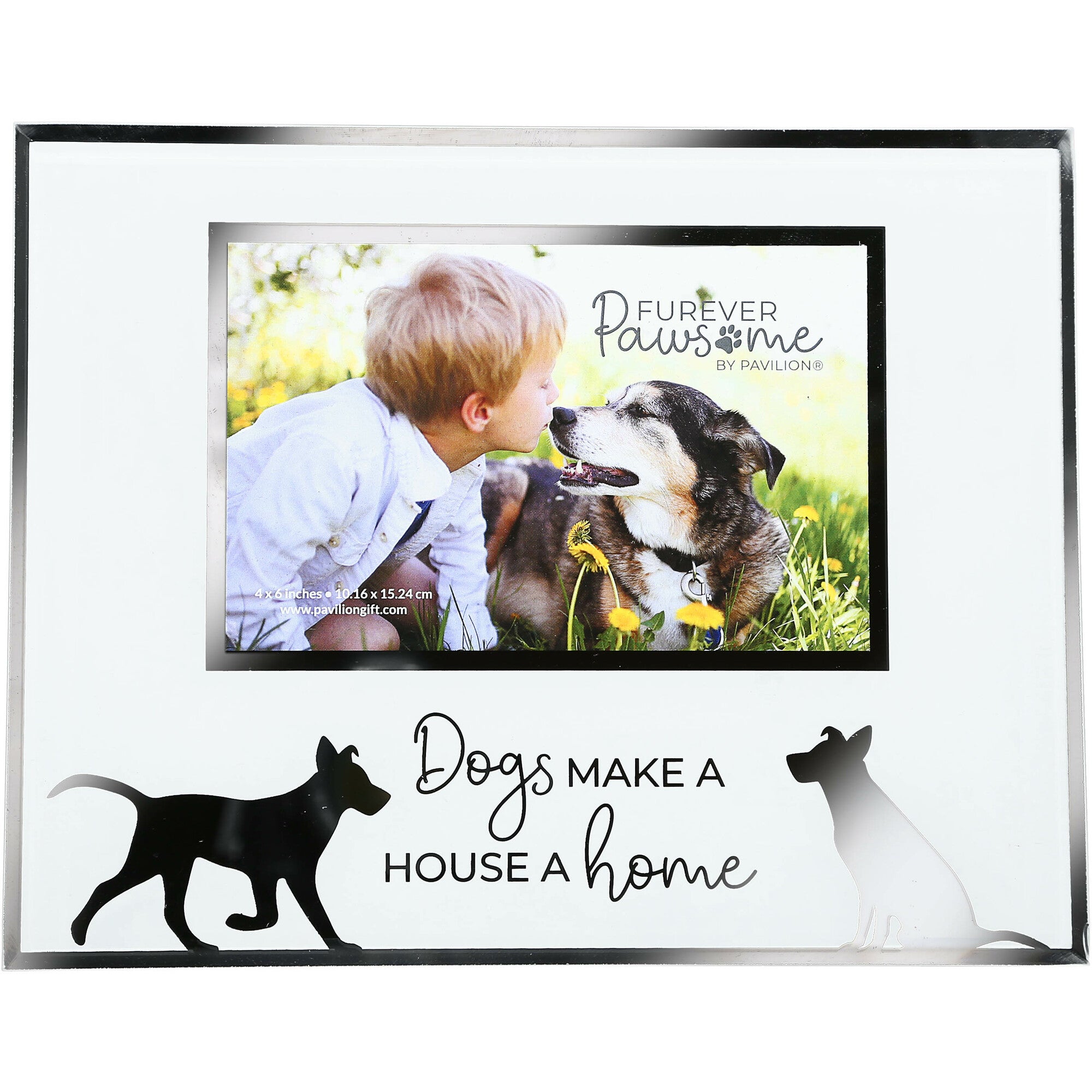 - IN-HOUSE DESIGN: The white background complements the beautiful silver dog silhouette details and the “Dogs Make A House A Home” sentiment placed below the picture. This unique and stunning piece will surely draw attention with its sophisticated styling.