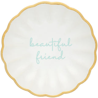 Beautiful Friend 2.75" Trinket Dish & 5mm Sterling Silver Cubic Zirconia Stud Earring Set