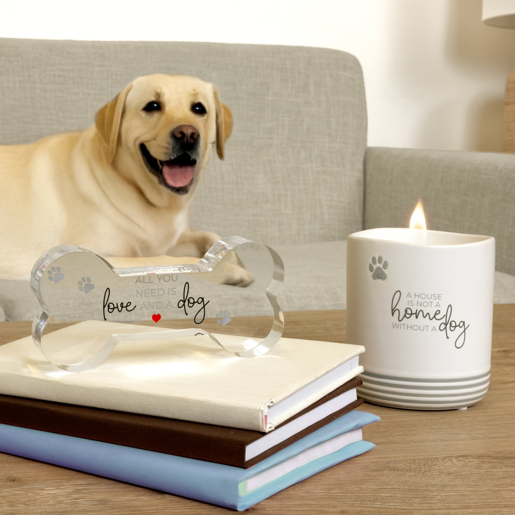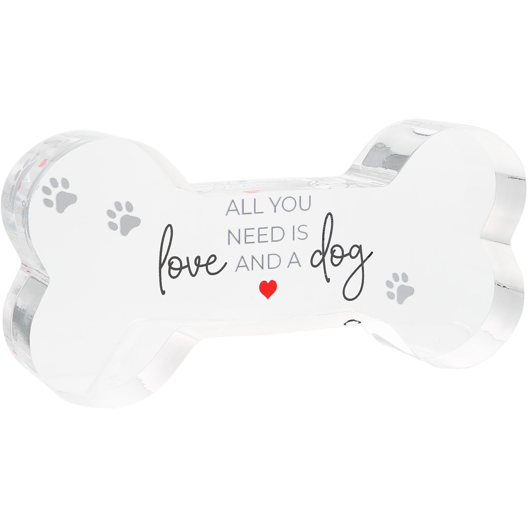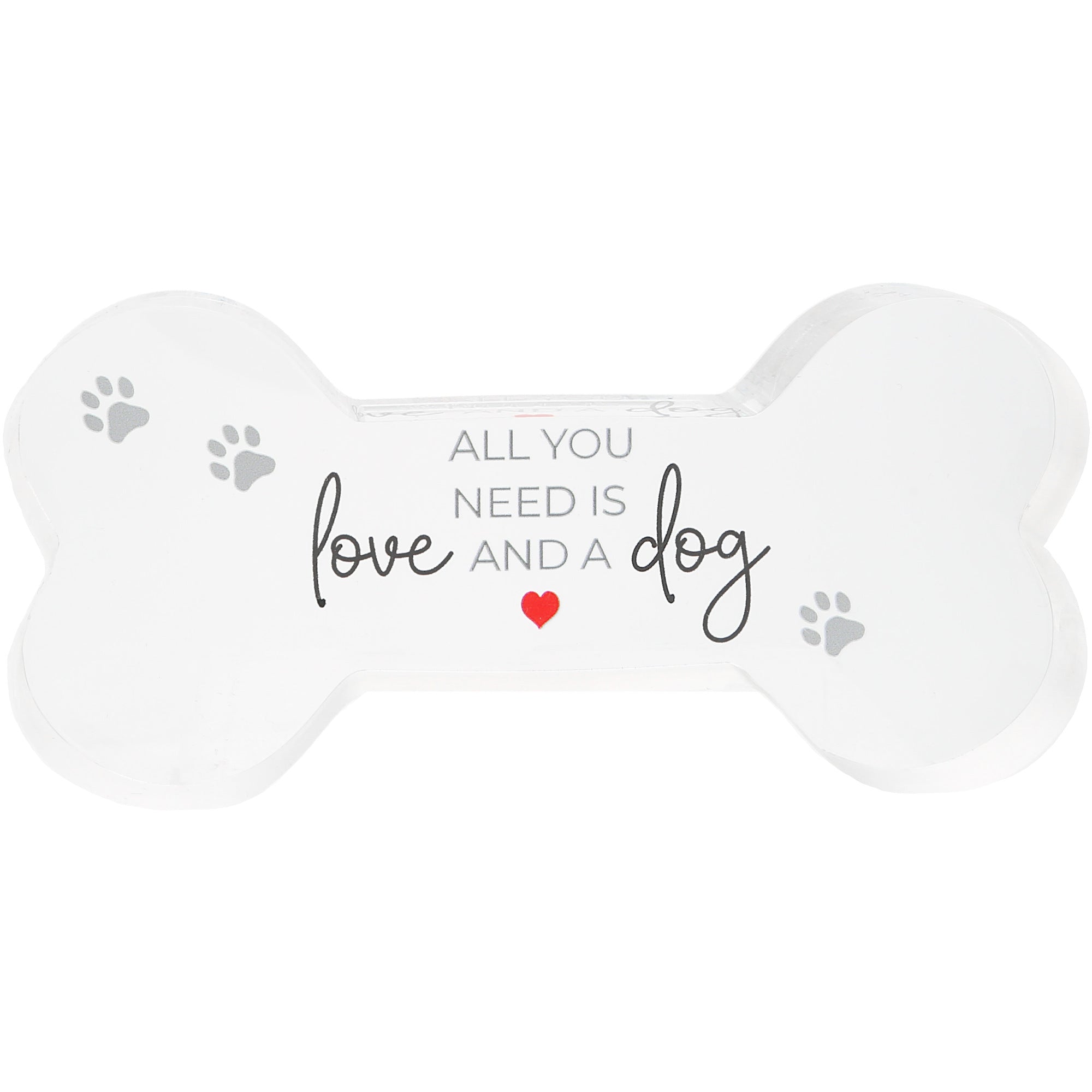 - IN-HOUSE DESIGN: Features a playful yet meaningful layout in soft gray and black text with the quote, “All you need is love and a dog.” The script font and lowercase styling add warmth and charm, while the tiny red heart and trailing paw prints subtly highlight the joy dogs bring. The bone silhouette makes it especially suited for canine-themed décor.