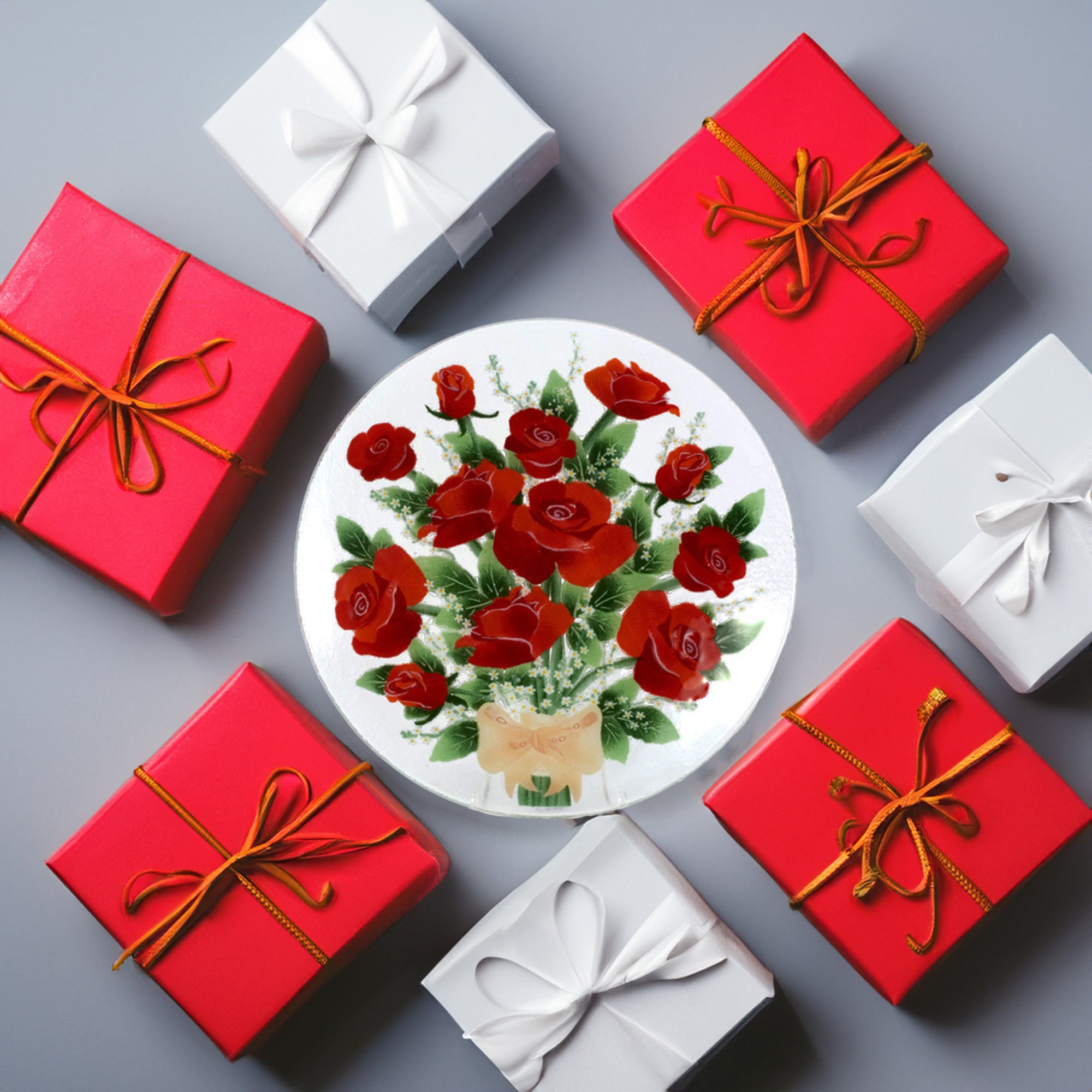 - PREMIUM QUALITY: 14" round plate, packaged securely in a printed box, is made from glass.