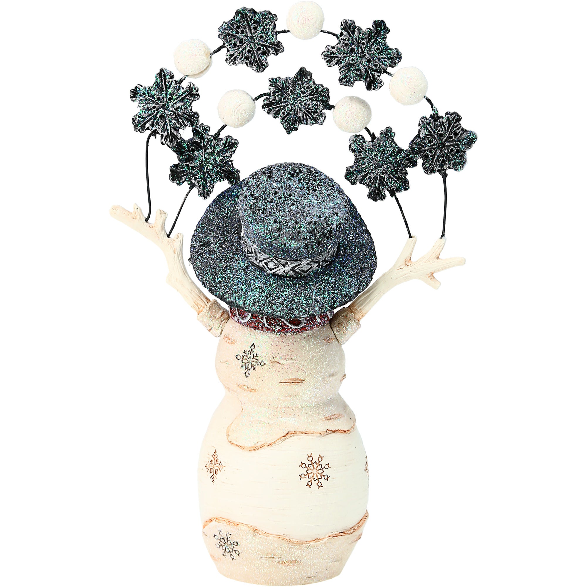 • IN-HOUSE DESIGN: "Hoping This Season Builds Heartwarming Memories," text is debossed and hand-painted onto the front of the figurine. The snowman figure features a dangling snowflake, brushed nickel, Birchwood accents, and signature snowflake detailing. There are foam pads on the bottom to prevent surfaces from being scratched. The figurine is topped with glitter making this the perfect choice for your holiday décor.