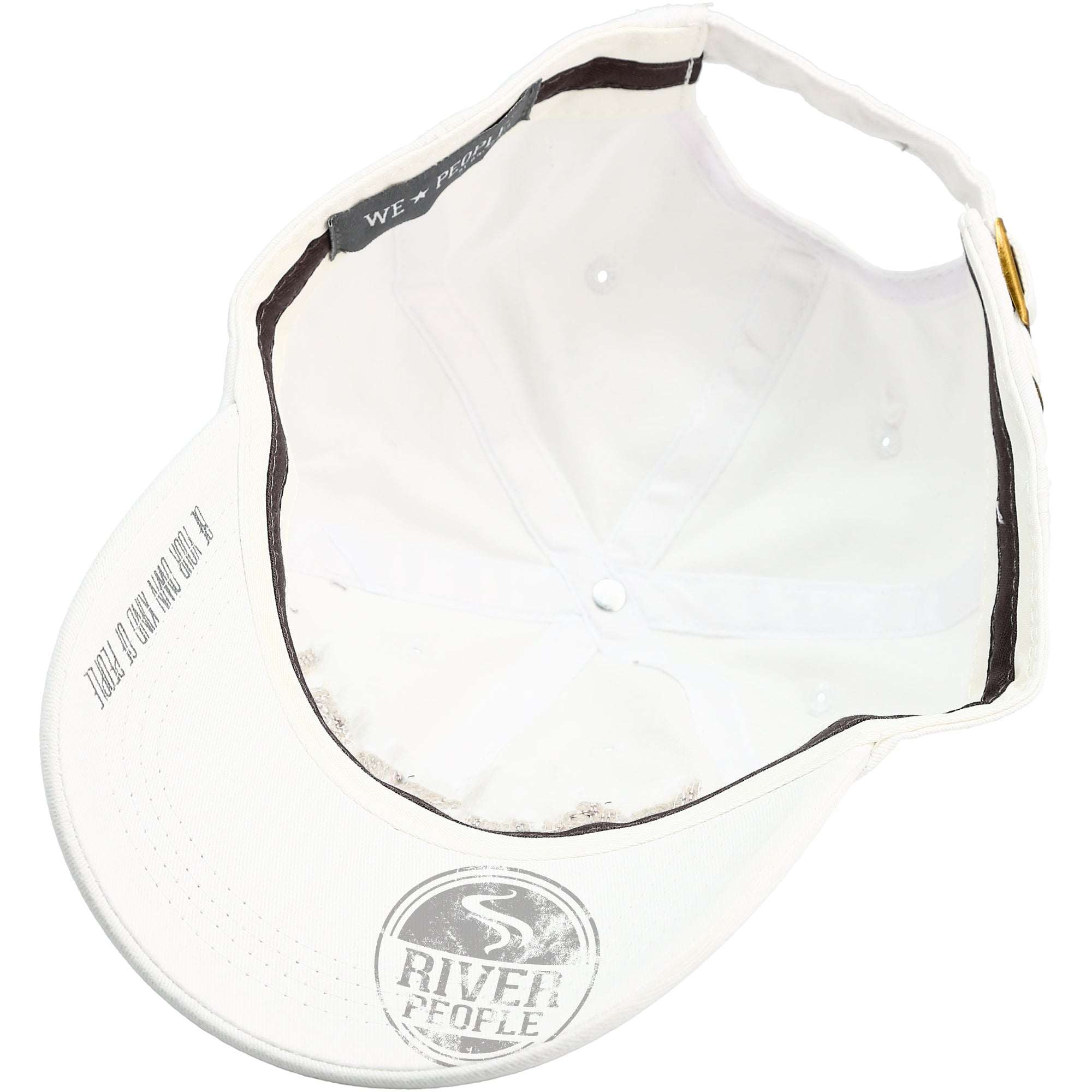 - IN-HOUSE DESIGN: "River People" text is embroidered and sewn-in with a frayed edge, as is the We People logo on the side of the hat. The brim features screen-printed text showing the "River People" logo.