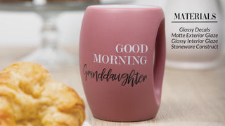- IN-HOUSE DESIGN: Good Morning Granddaughter" white and black sentiment decal on the front side of the matte pink cup. The Interior is white and has a glossy glaze prop 65 food-safe finish. We designed and created this mug to blend in with any of your kitchen's current drinkware collections with a refined, modern, and aesthetically pleasing look paired with humor and relatable sentiment.