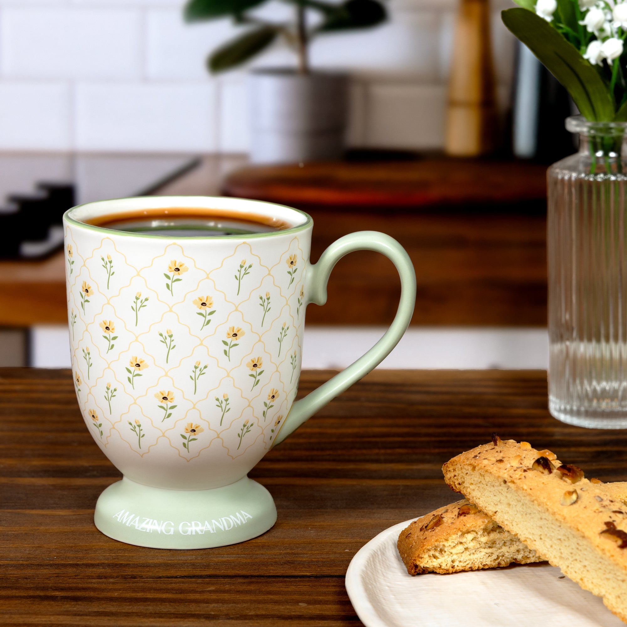 - IN-HOUSE DESIGN: Features a calming sage-green floral lattice pattern with raised glossy text reading “Amazing Grandma.” The elegant design pairs beautifully with classic, modern, or cottage-style décor.
