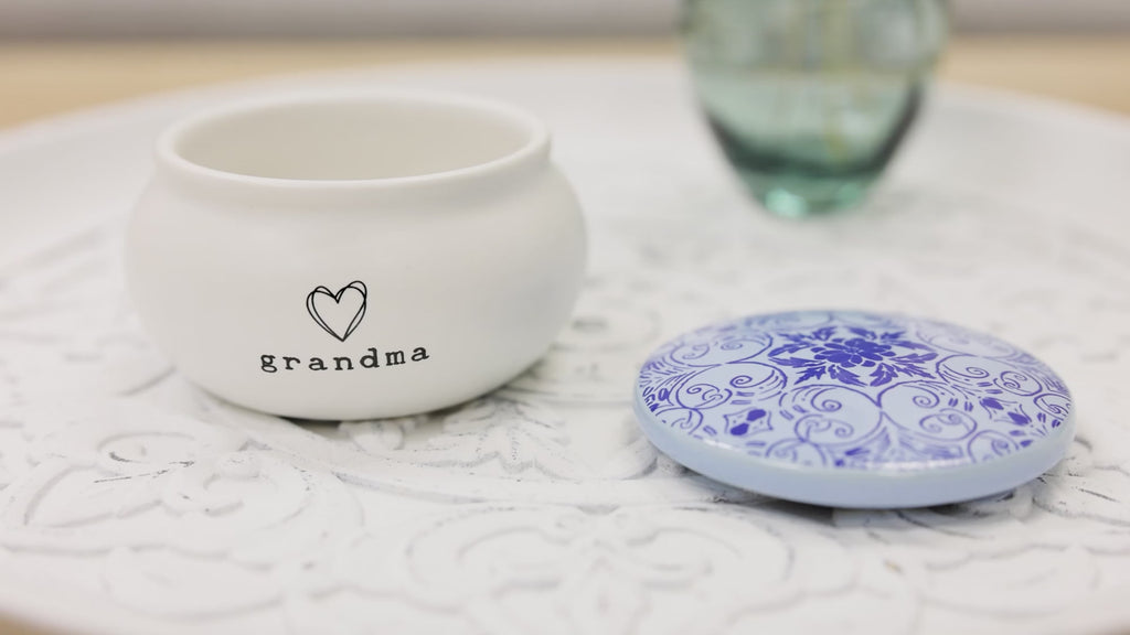 • IN-HOUSE DESIGN: The dish's lid has a simplistic "Grandma" decal and a double-line heart. At the same time, the interior features a butterfly, accompanied by a "You Are Amazing” sentiment that hugs the bottom of the jar.