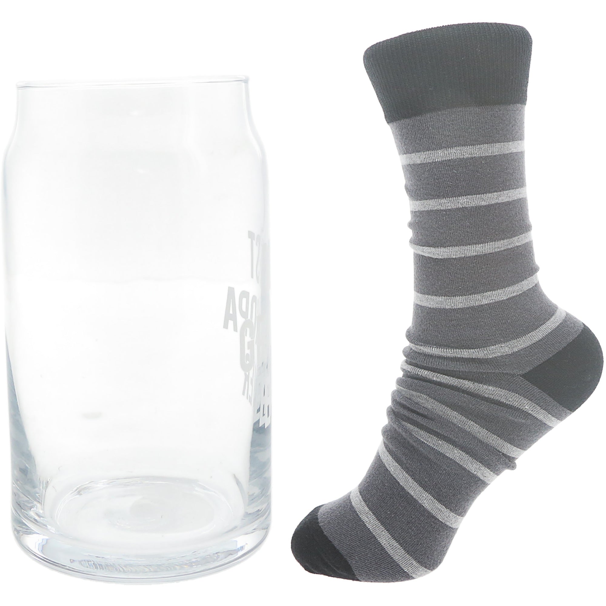 • PREMIUM QUALITY: The 16 oz glass is crafted from glass. Excellent for sipping all sorts of beverages, including coffee, beer, cocktails, water, juices, and more. The M/L socks fit men sizes 8-12 and are constructed from 70% cotton, 28% polyester & 2% spandex; fantastic for daily wear.