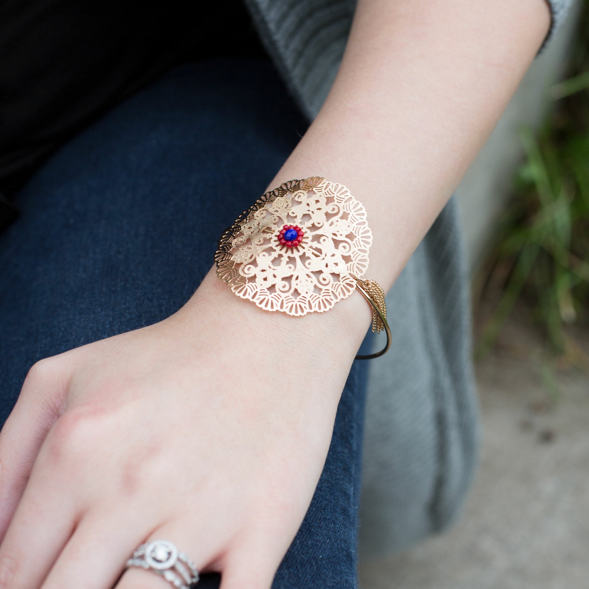 - PREMIUM QUALITY: Bangle bracelet, packaged in a velvet pouch, is made from a high-quality brass with a gold plating and iron blend.