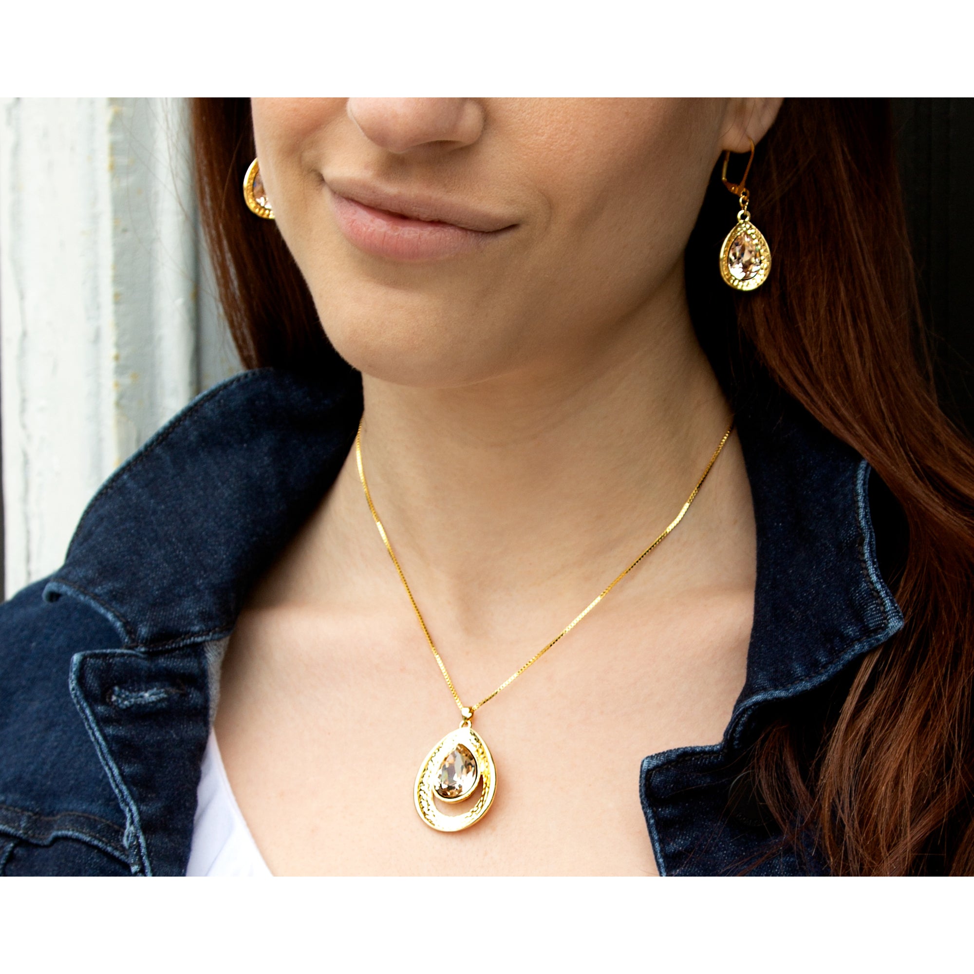 • IN-HOUSE DESIGN: Necklace features a hammered look teardrop-shaped pendant with a teardrop light pink silk crystal.