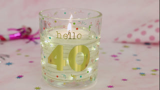 - PREMIUM QUALITY: This single-wick soy wax LED candle features a colorful confetti design on a sturdy glass vessel. The "Hello 40" gold metallic text is prominently displayed alongside festive balloons, adding a celebratory touch. This candle can be lit or you can use a candle lamp to activate the LED lights. Packaging includes a Kraft die-cut box, making it gift-ready.