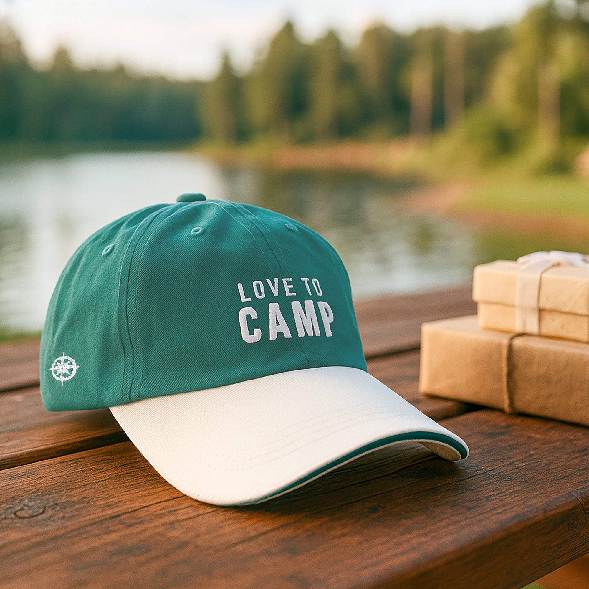 - IN-HOUSE DESIGN: The sentiment “LOVE TO CAMP” is embroidered across the front in bright white lettering, standing out against the deep sage background. A compass icon is stitched into the left panel as a nod to adventure and outdoor exploration. Accent rim stitching around the brim completes the natural aesthetic.