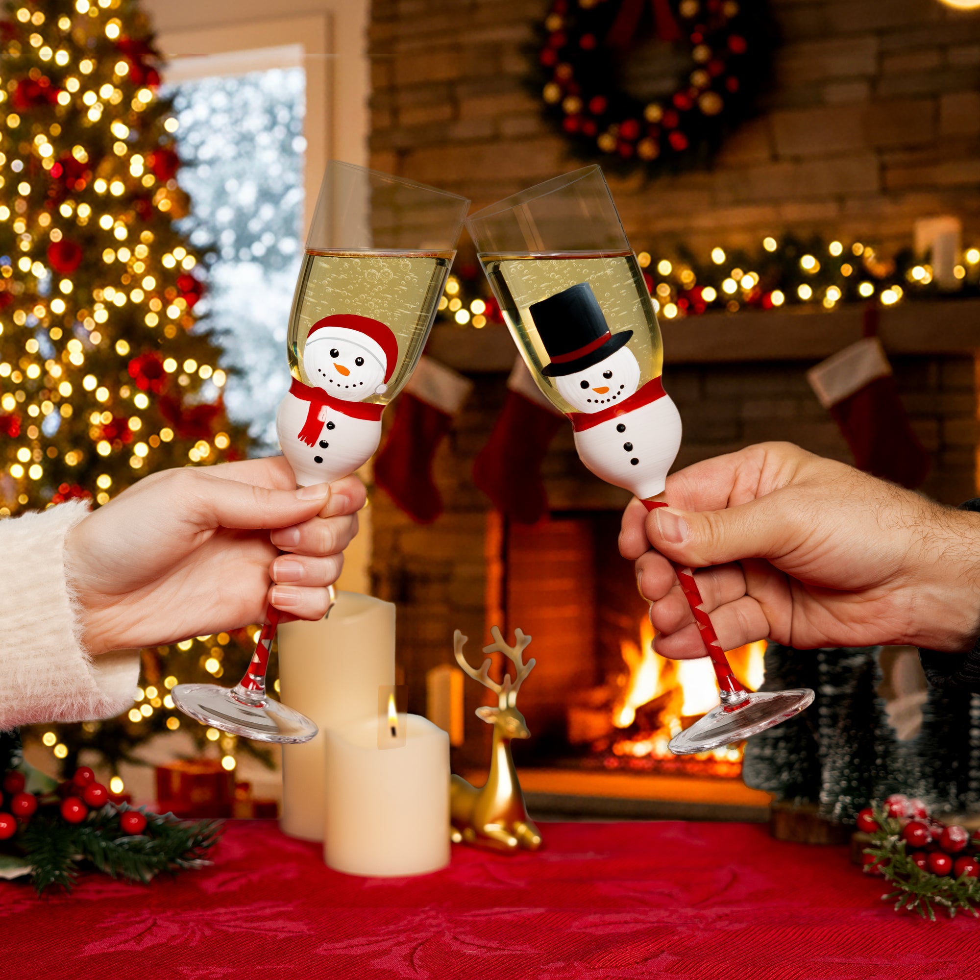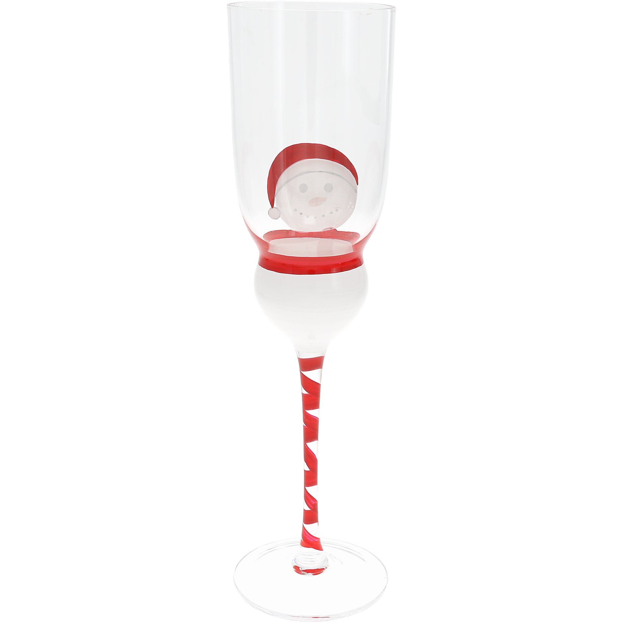 - IN-HOUSE DESIGN: This flute showcases an adorable smiling snowman wearing a Santa hat and scarf just in time for the holidays. Along with the striped stem, snowflake charm, and hand-painted details, this glass is sure to feel unique.