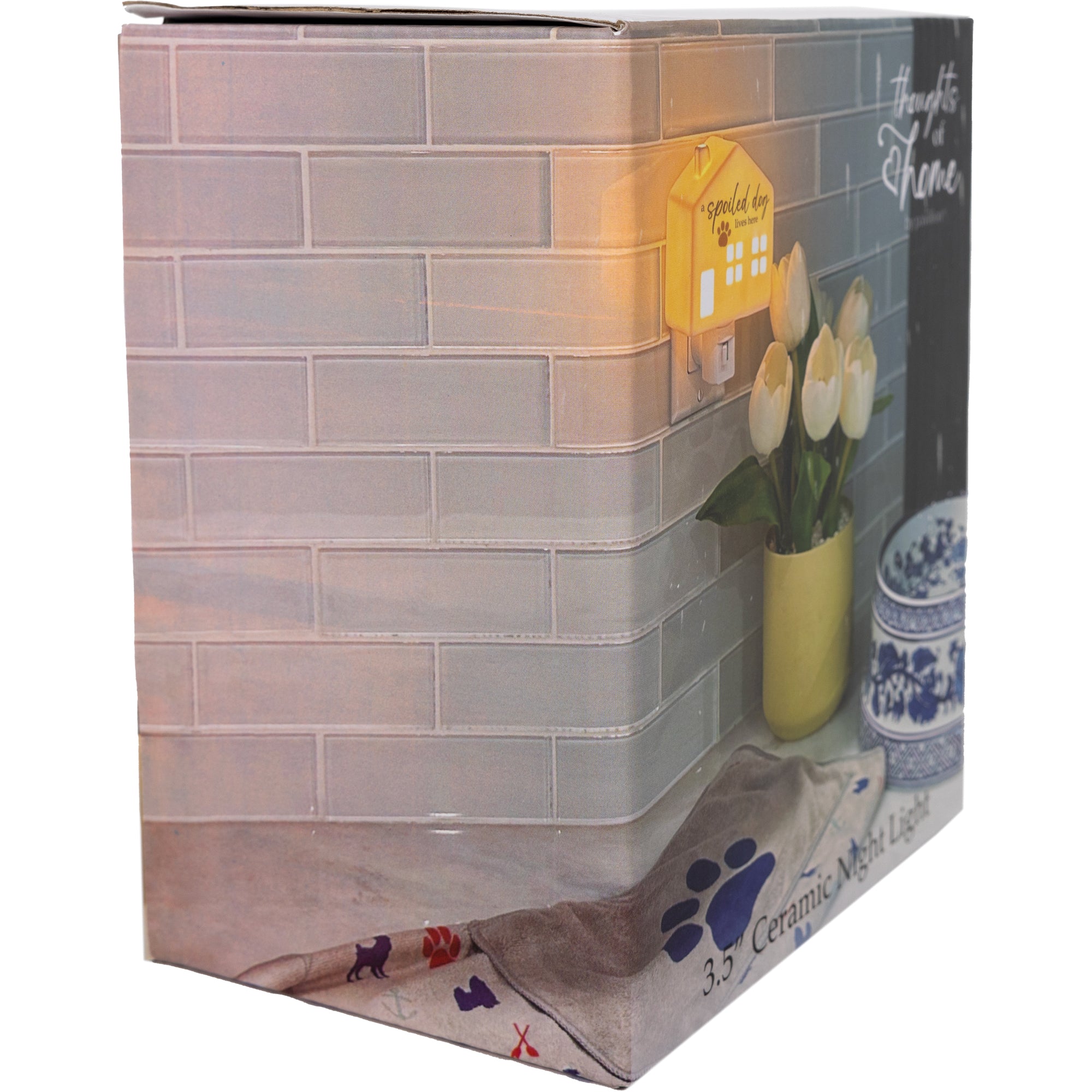 - IN-HOUSE DESIGN: The matte white house features cut-out windows, doors, and a chimney to let the low-heat 5W warm light and 15,000-hour lightbulb shine through. The glossy gray "A Spoiled Dog Lives Here" sentiment and pawprint silhouette design are neatly placed on the front side. The three other sides of the house are only white.