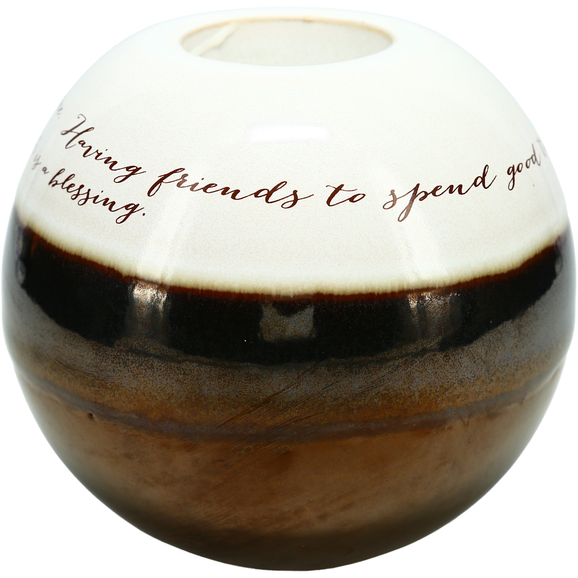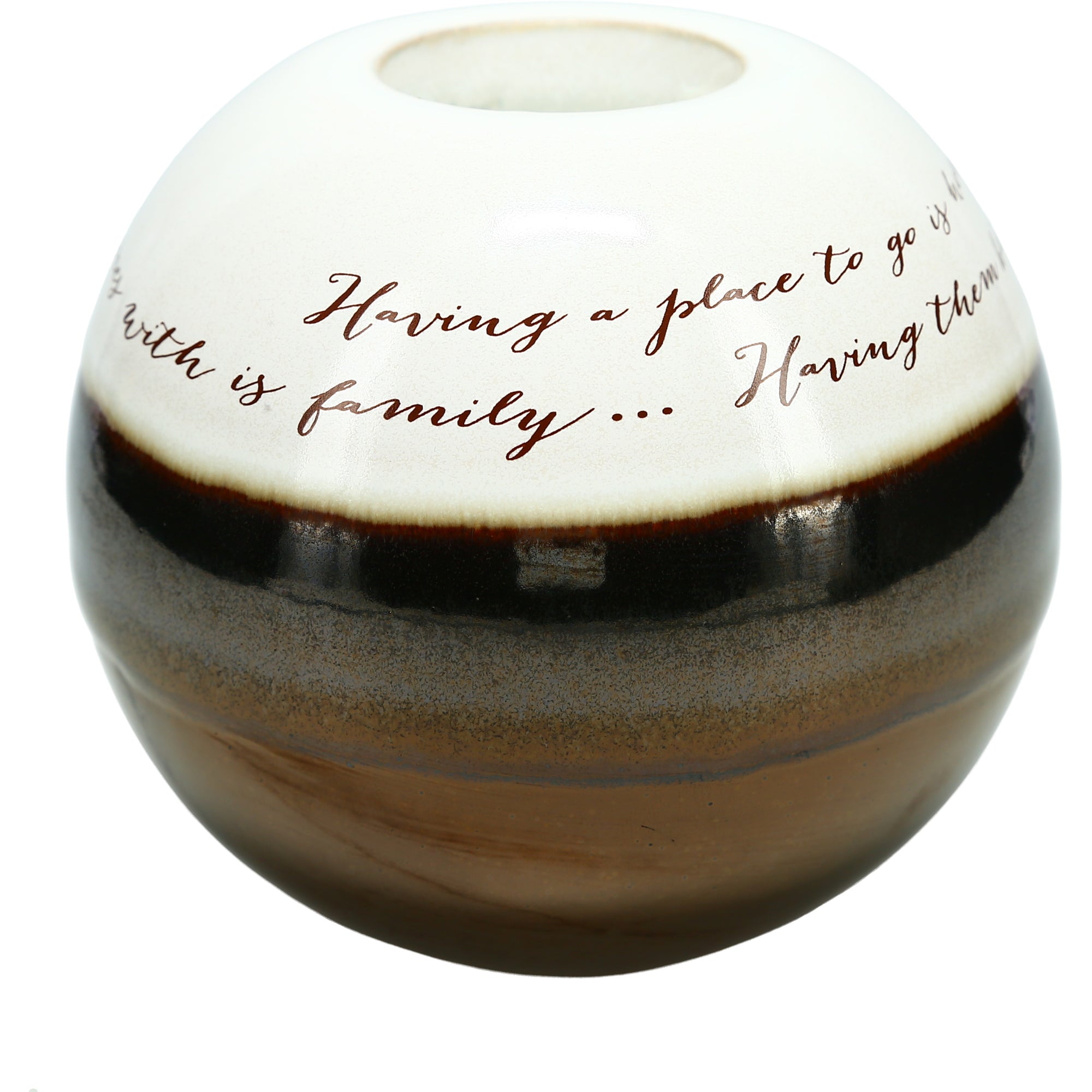 - IN-HOUSE DESIGN: "Having A Place To Go Is Home; Having Friends To Spend Good Times With Is Family; Having Them Both Is A Blessing" text decal is applied to the entirety of the candle holder.