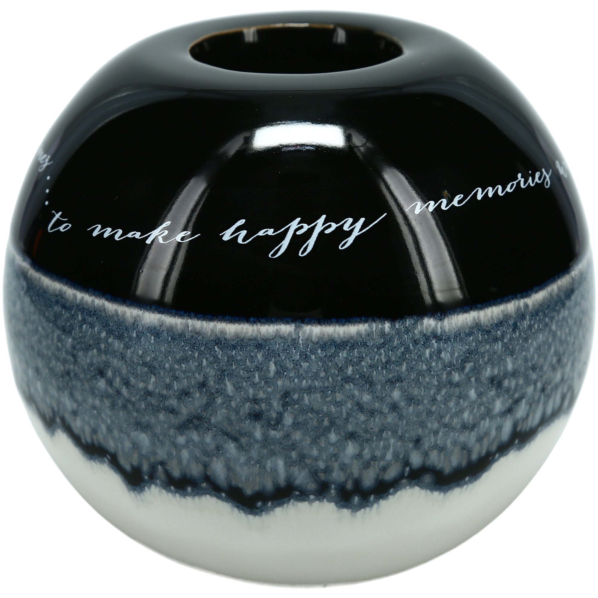 - PREMIUM QUALITY: 4.5" round candle holder, packaged in a printed box, is made from stoneware and fits one regular tealight candle (included).