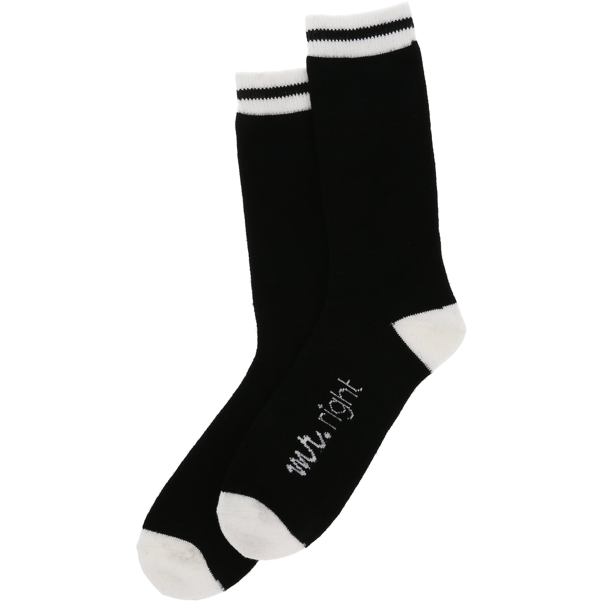 - IN-HOUSE DESIGN: The crew socks have a white ankle, toe & heel with a black body and a white "Mr. Right" sentiment on the outer lateral of the boot socks. In addition, there is a black stripe on the ankle. This design reflects on the exterior of each hose.