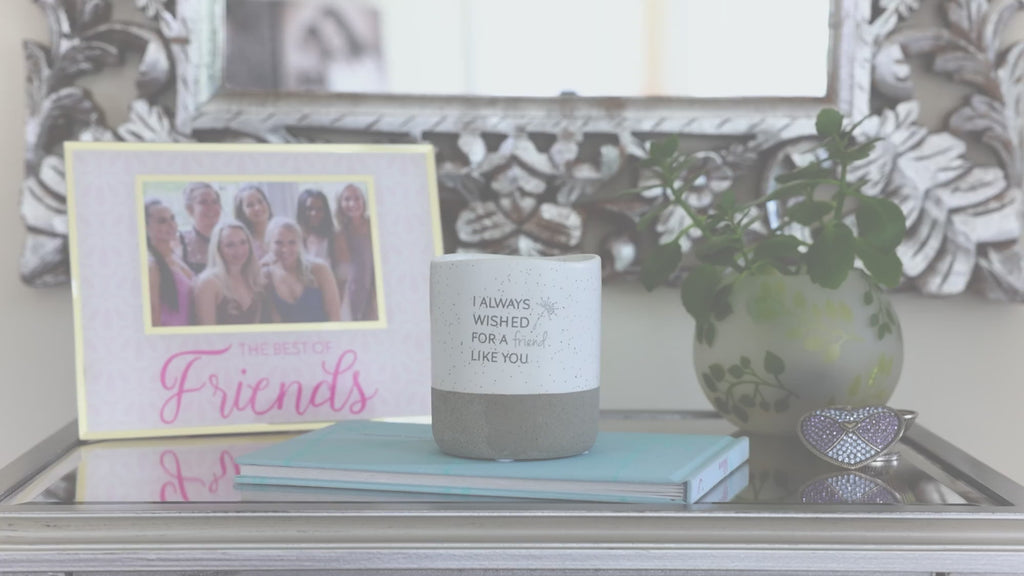 - IN-HOUSE DESIGN: The new & innovative candle offers a unique message for your loved one within the wax as time progresses. You will begin to see the black dandelion and "Amazing Friend" sentiment after about 10 minutes. As you watch, the entire decal will appear after 50 minutes. Then, the message will hide again and reappear with each burn. The front of the candles has a simplistic "I Always Wished For A Friend Like You" decal accompanied by a light gray dandelion.