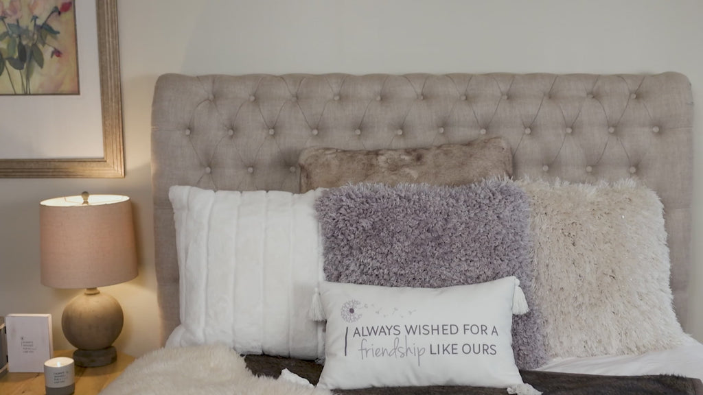 - IN-HOUSE DESIGN: A touching front design showcases a dandelion with seeds blowing in the wind. The accompanying sentiment, "I Always Wished For A Friendship Like Ours," is elegantly screen printed in soothing gray. This lovely piece reminds us of our gratitude for family and friends, a thankfulness for whatever family means to you. The high-quality materials & meticulous craftsmanship and is a meaningful & cherished item for any home.
