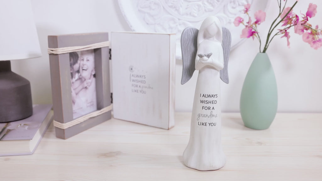• IN-HOUSE DESIGN: "I Always Wished For A Grandma Like You" sentiment decal is printed with varying light and dark grays with san serif and cursive font combo on the midpoint of the front of the dress. Her faceless and simplistic stature will compliment all decor in anyone's home.