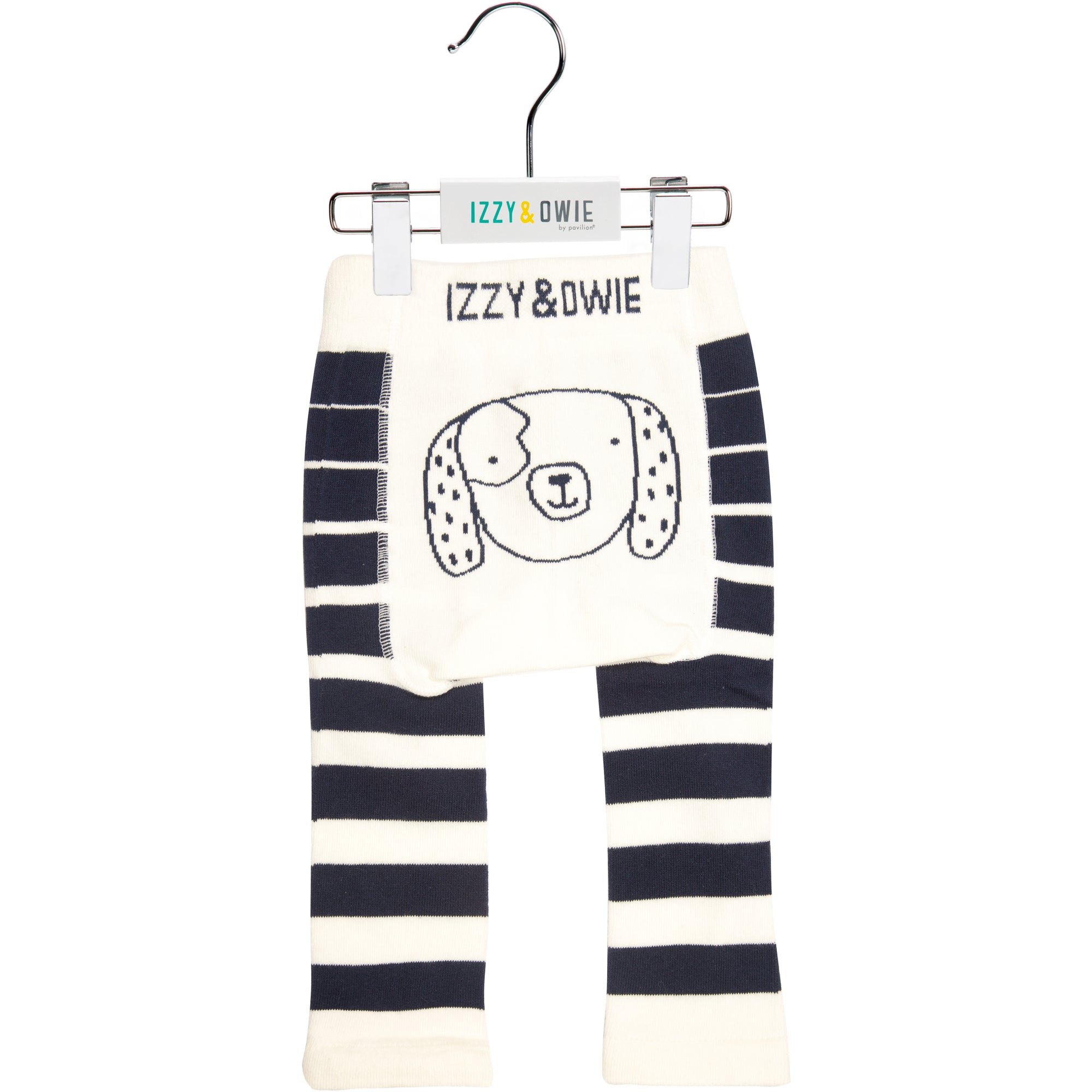 • IN-HOUSE DESIGN: "Izzy & Owie" text is sewn into the waistband, puppy image is sewn into the rear, and the stripe pattern of the main material covers the rest of the leggings.