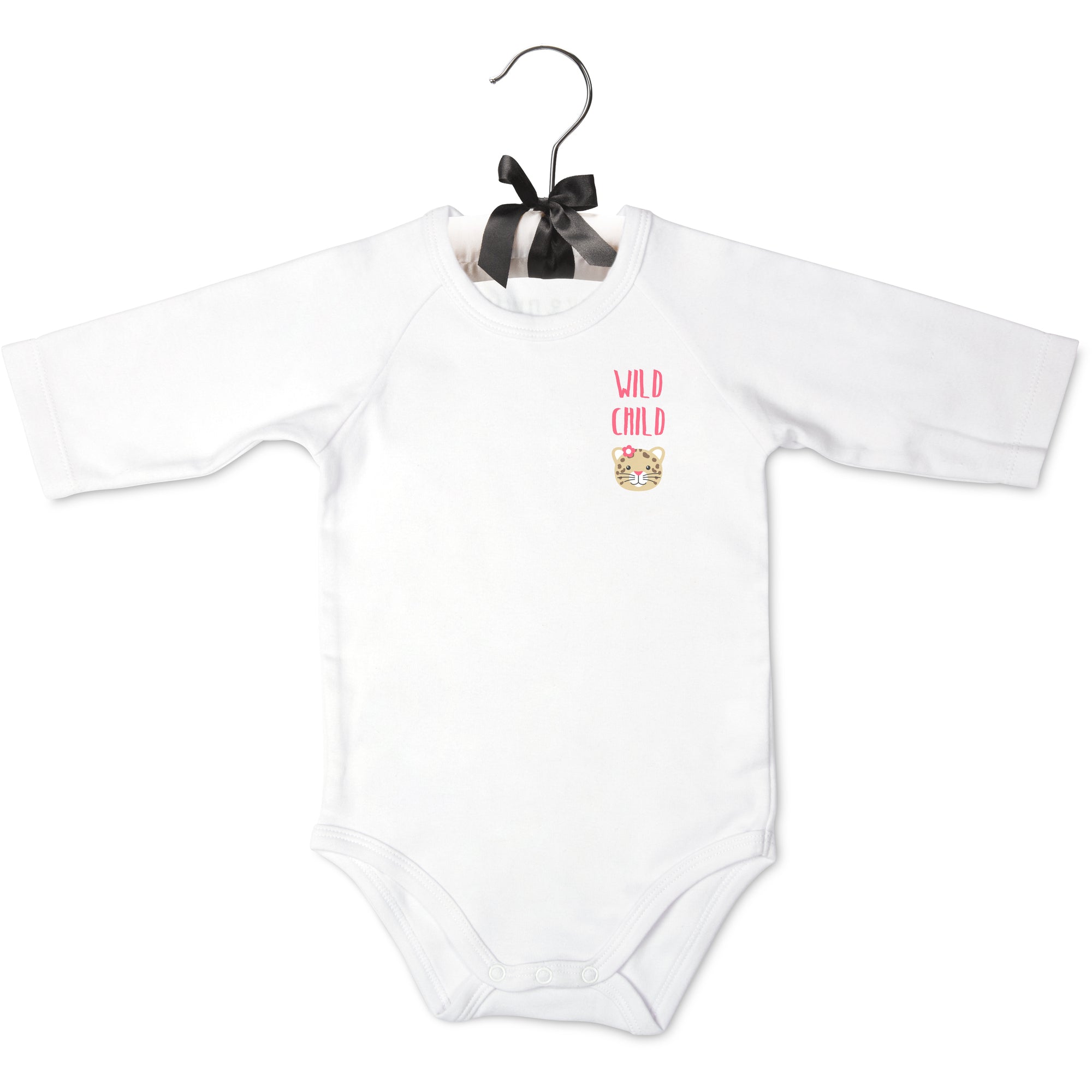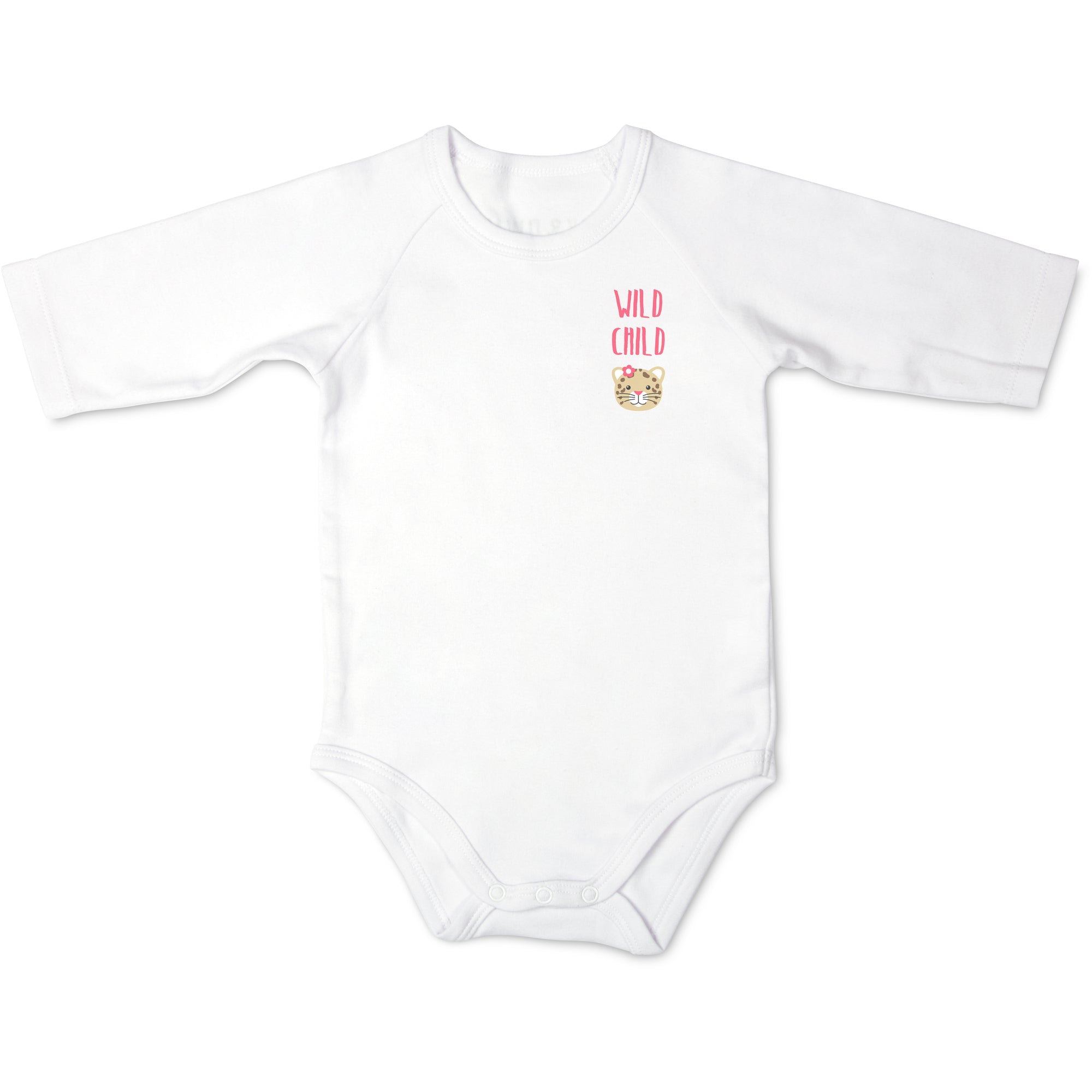 - IN-HOUSE DESIGN: "Wild Child" text is printed onto the front of the bodysuit, alongside the printed jungle cat image.
