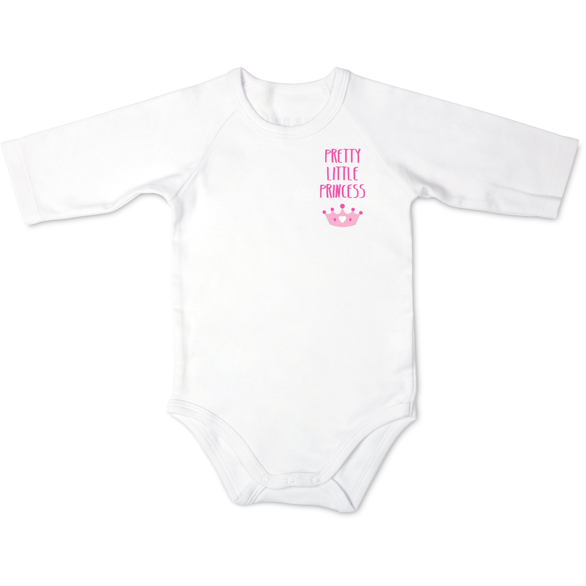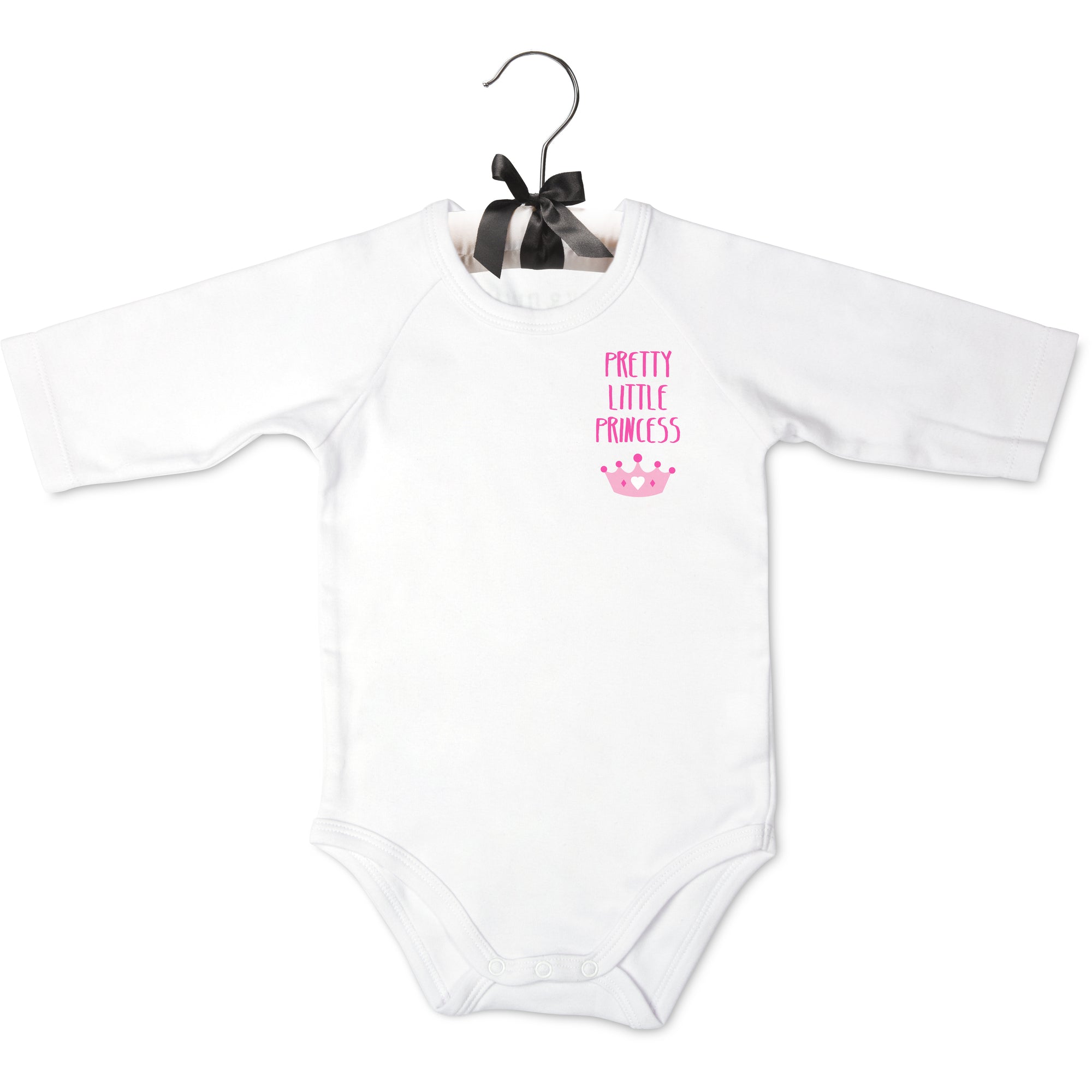 - IN-HOUSE DESIGN: "Pretty Little Princess" text is printed onto the front of the bodysuit, alongside the printed crown image.