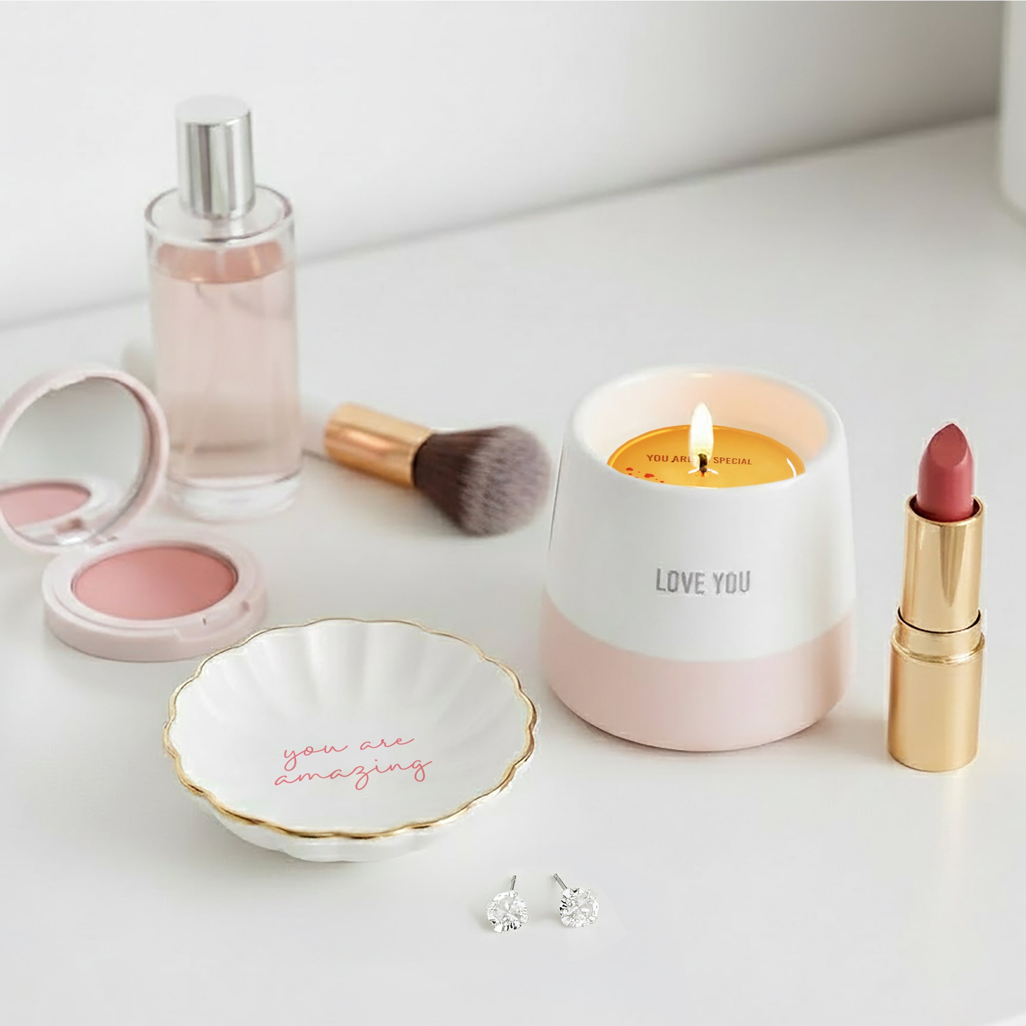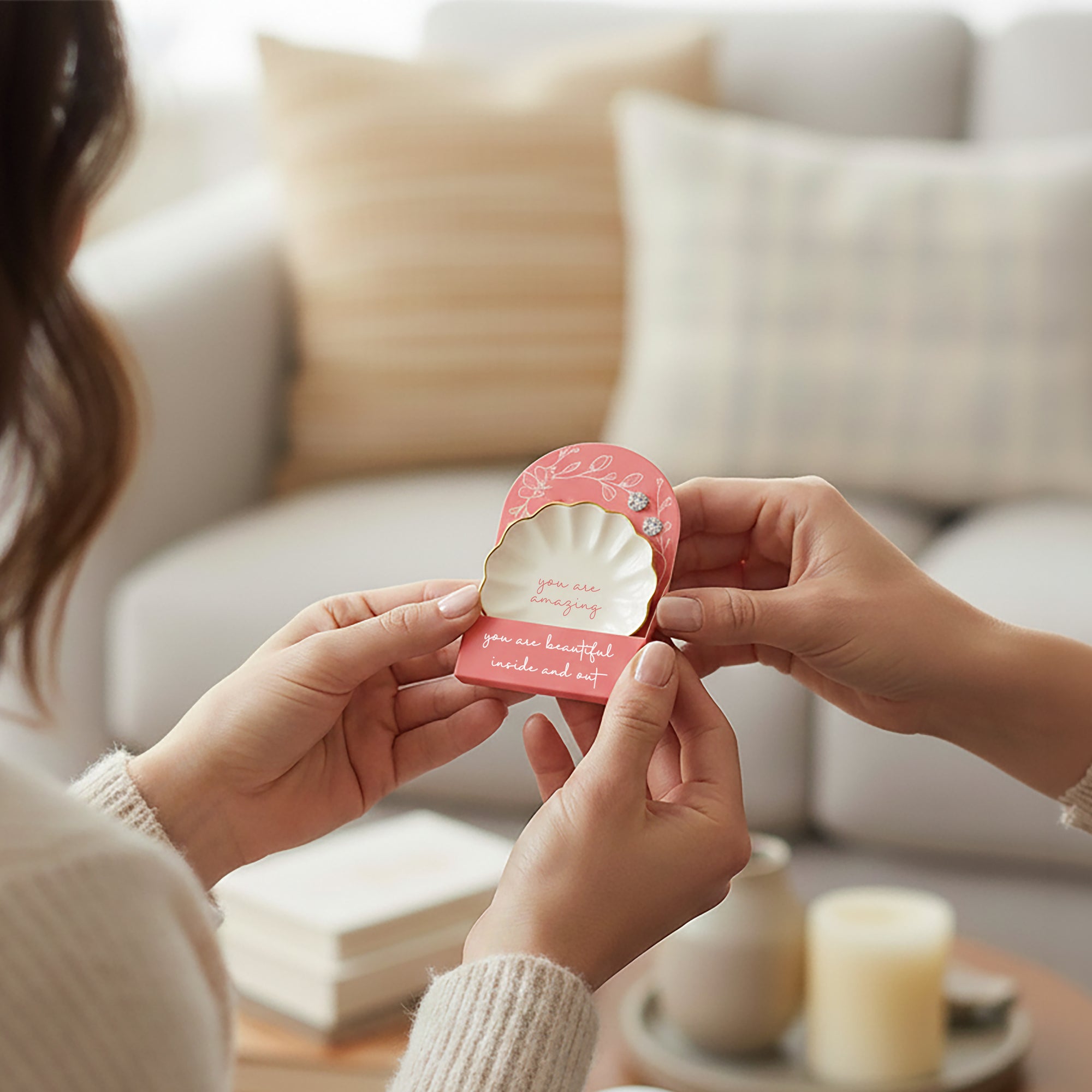 - IN-HOUSE DESIGN: The dish features the bold, uplifting sentiment “you are amazing” in coral red, with a coordinating deep pink backer card that reads “You are beautiful inside and out.”