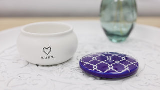 - IN-HOUSE DESIGN: The dish's lid has a simplistic "Aunt" decal and a double-line heart. At the same time, the interior features a butterfly, accompanied by a "You Are Amazing” sentiment that hugs the bottom of the jar.