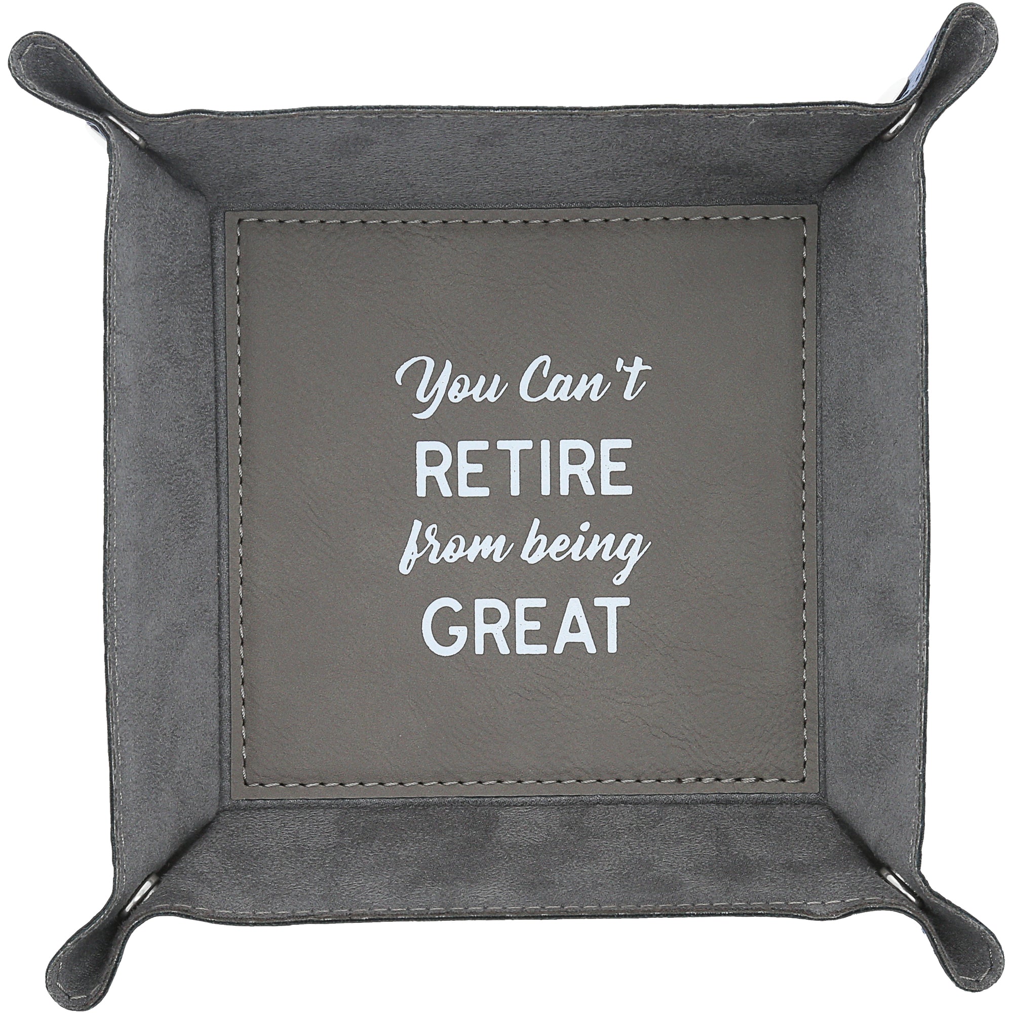 - IN-HOUSE DESIGN: The exterior and interior are gray with a white debossed heat-stamped "You Can't Retire From Being Great" sentiment in the center PU leather section. It's great for holding items such as dice, earbuds, cash, wallets, coins, bills, earrings, necklaces, bracelets, rings, and other small keepsake objects when snapped.