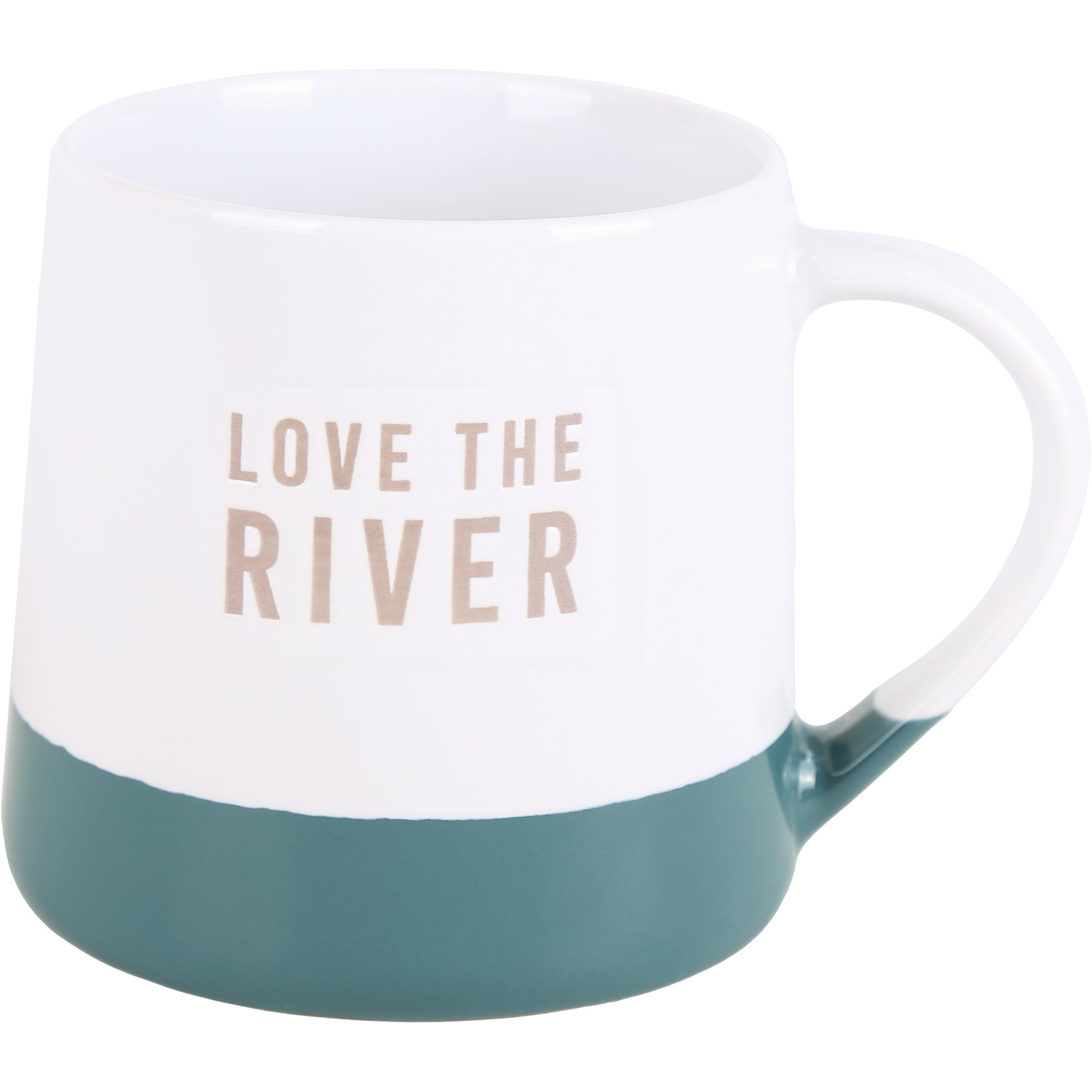 - IN-HOUSE DESIGN: The “LOVE THE RIVER” sentiment is printed in soft taupe on the front, contrasted by a glaze that mimics flowing current and earthy stone. Each piece has a slightly different finish, creating one-of-a-kind ripple-like patterns.